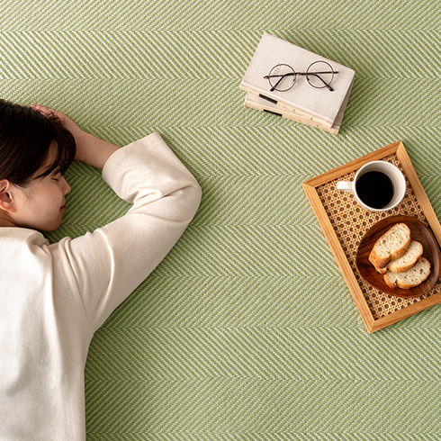 思わず寝転がってしまいたくなる心地良さは、暑い夏にもべたつきにくく、さらっと快適なくつろぎ空間をおつくりいただけます。