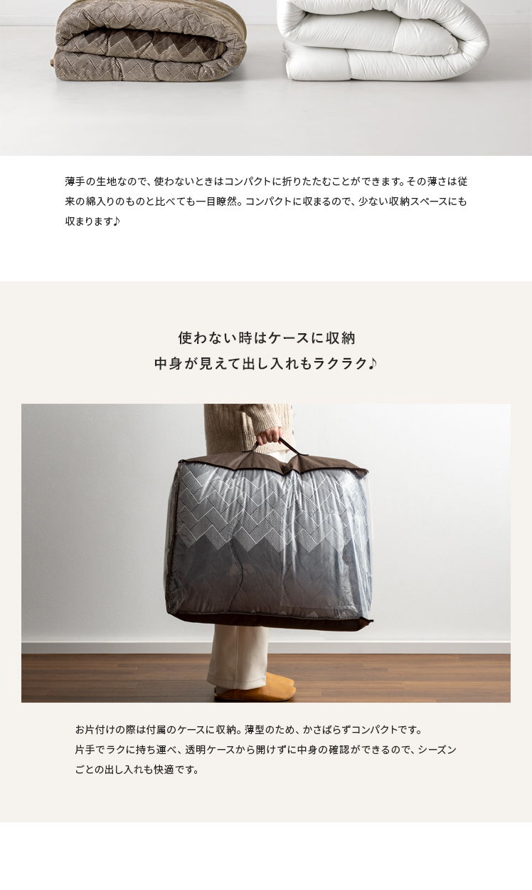 ヘリンボーン調 起毛生地 洗える 省スペース 薄手