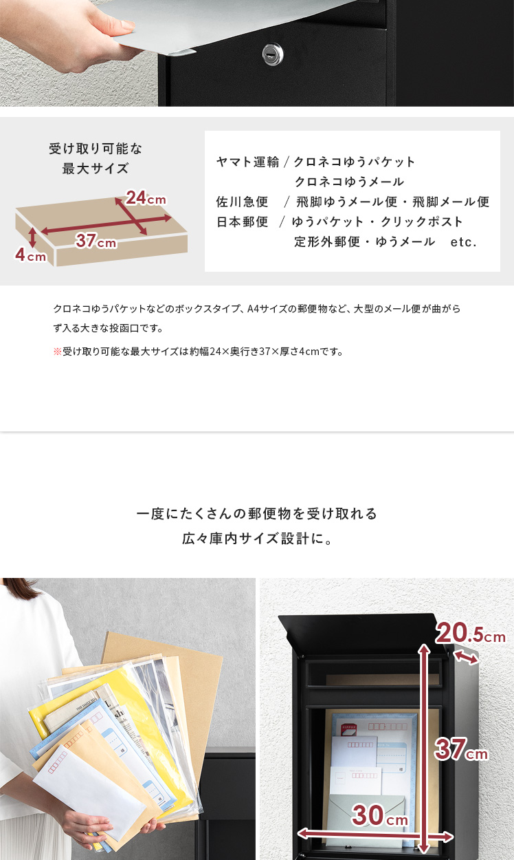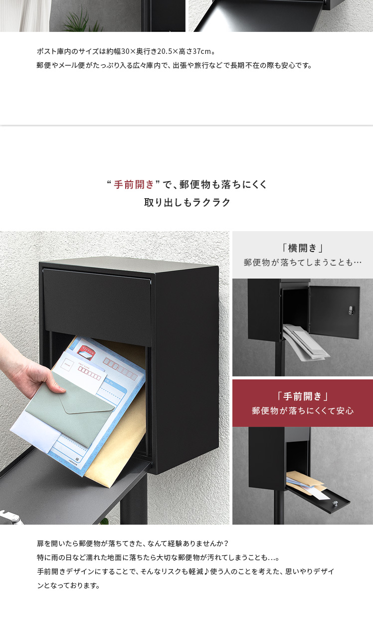 置くだけ 郵便ポスト 穴あけ不要 宅配ボックス 防滴 手前開き