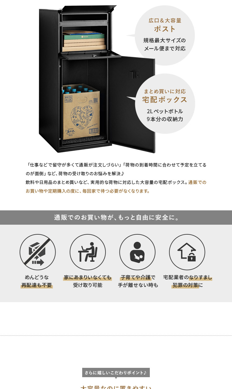 大容量 印鑑入れ付き 鍵付き 置き配 パーセルボックス