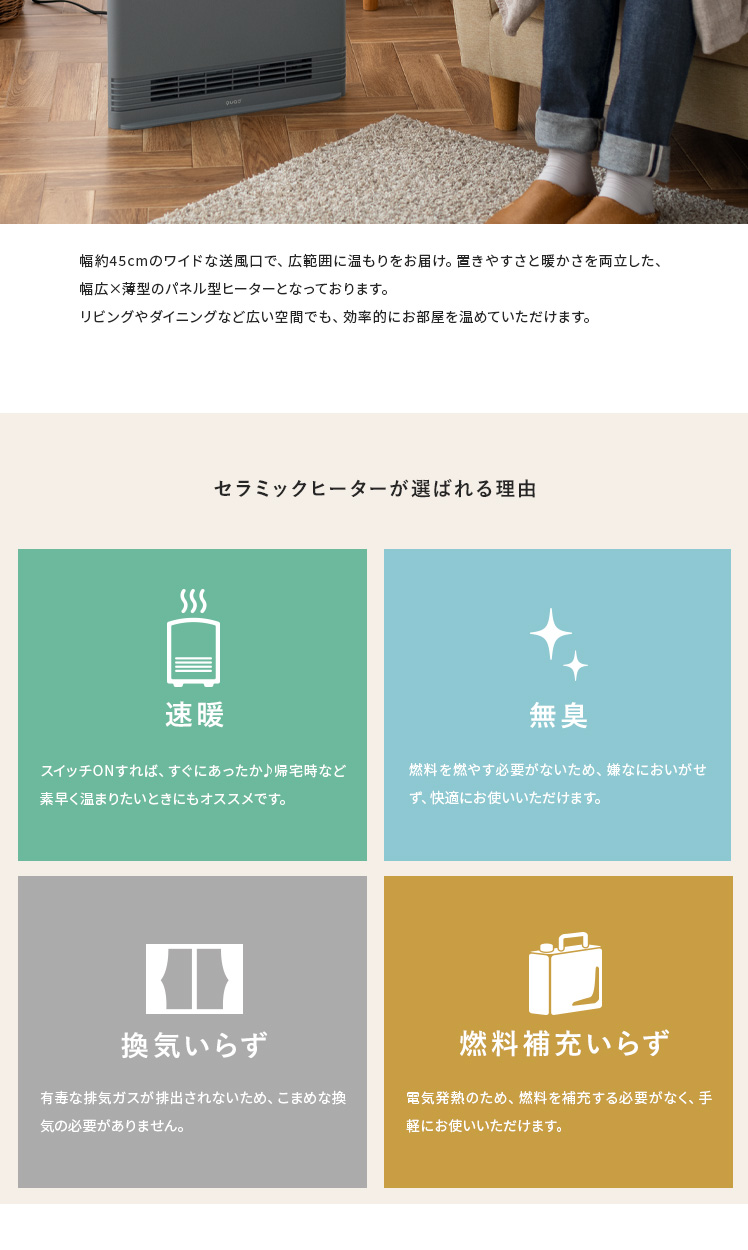 [幅45] 省エネセラミックヒーター WIDE ENA HEAT〔ワイドエナヒート〕
