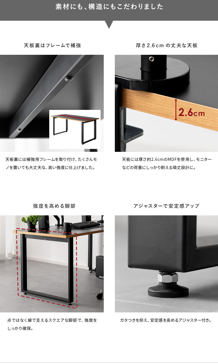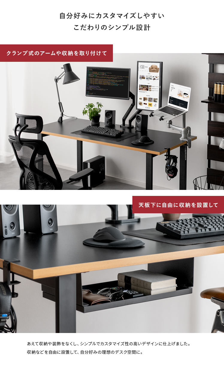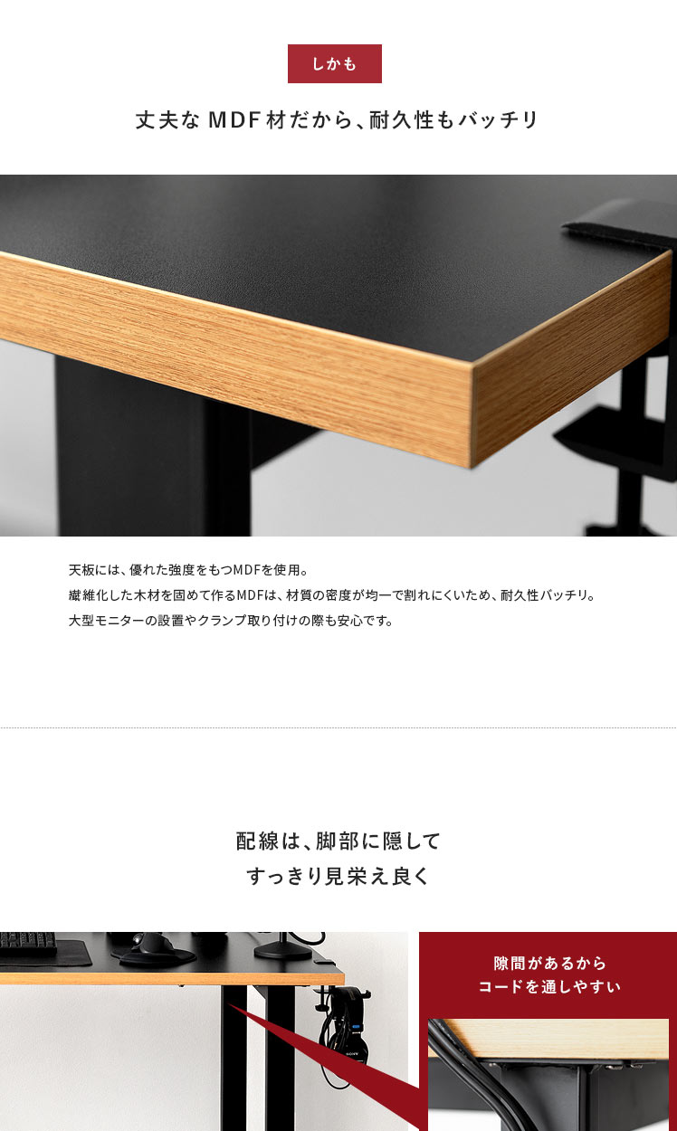 どこでもクランプ取り付け可能 配線隠せる MDF材天板
