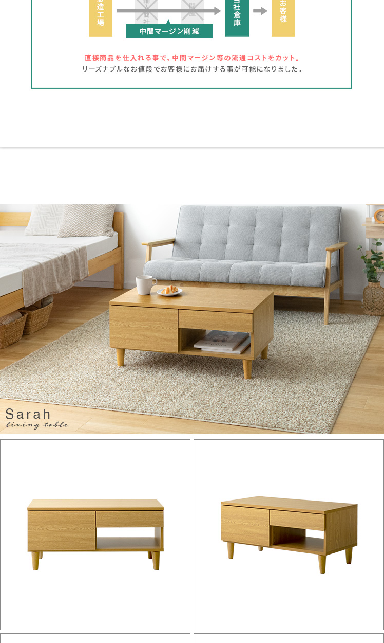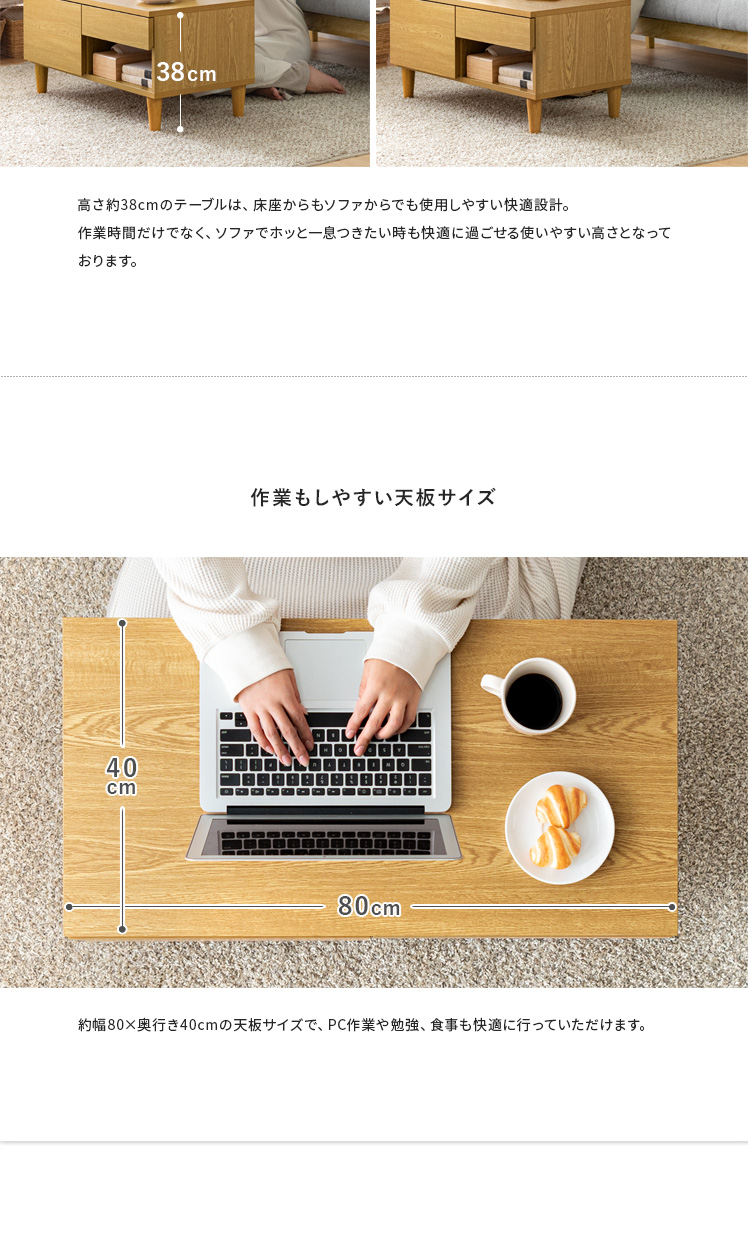 [幅80] 収納付きリビングテーブル Sarah(サラ)