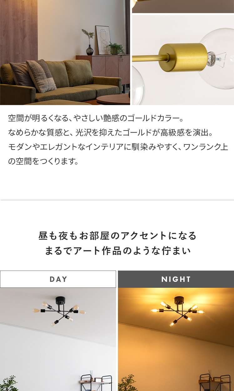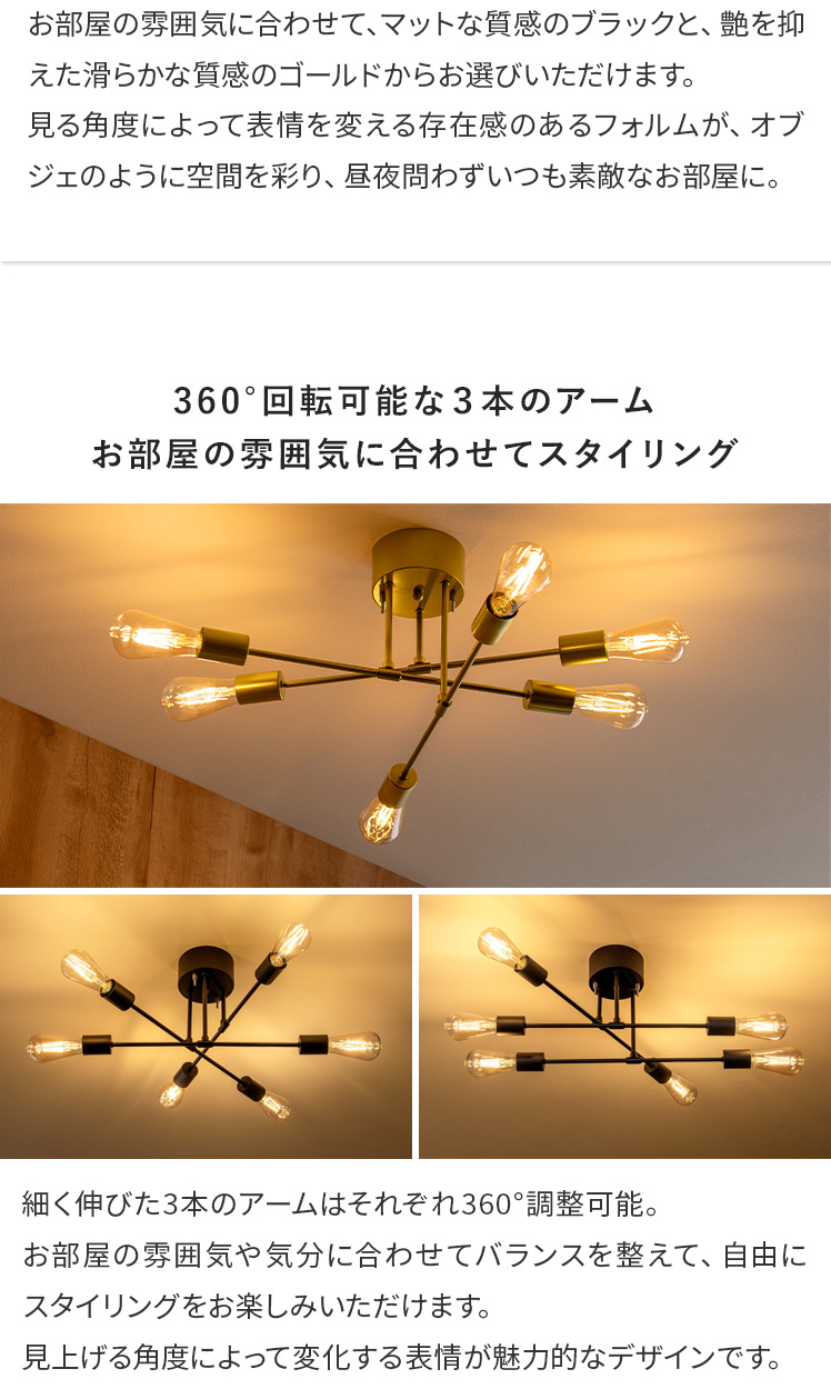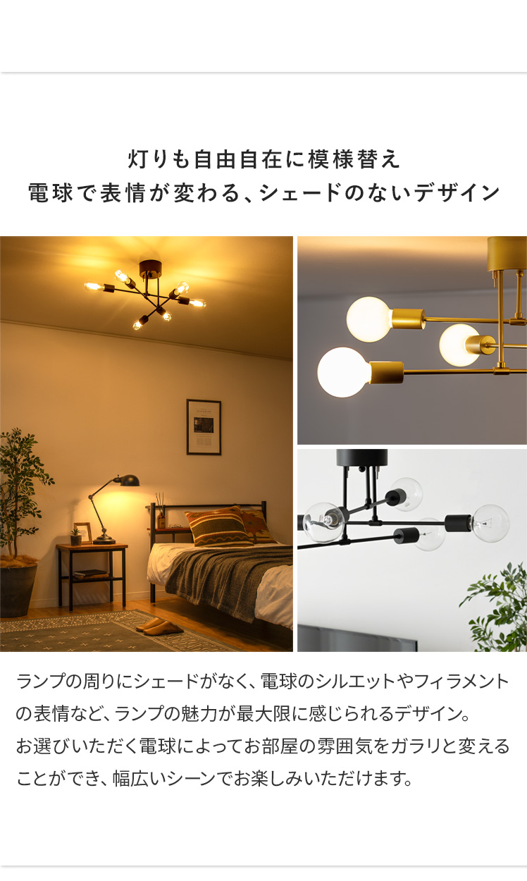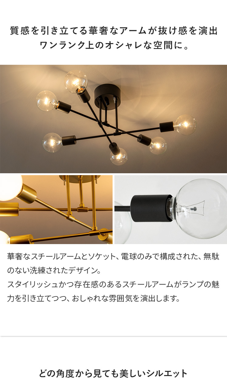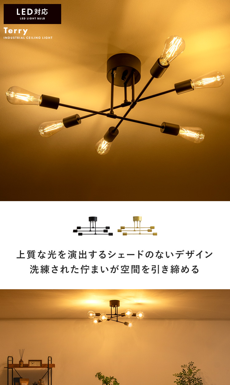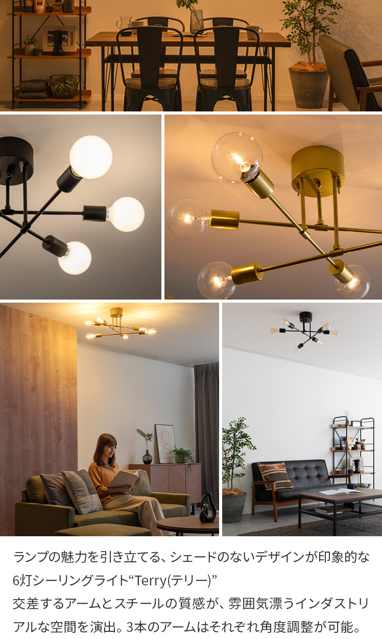 シーリングライト Terry〔テリー〕/ランプの魅力を引き立てる、シェードのないデザインが印象的な6灯シーリングライト“Terry(テリー)”