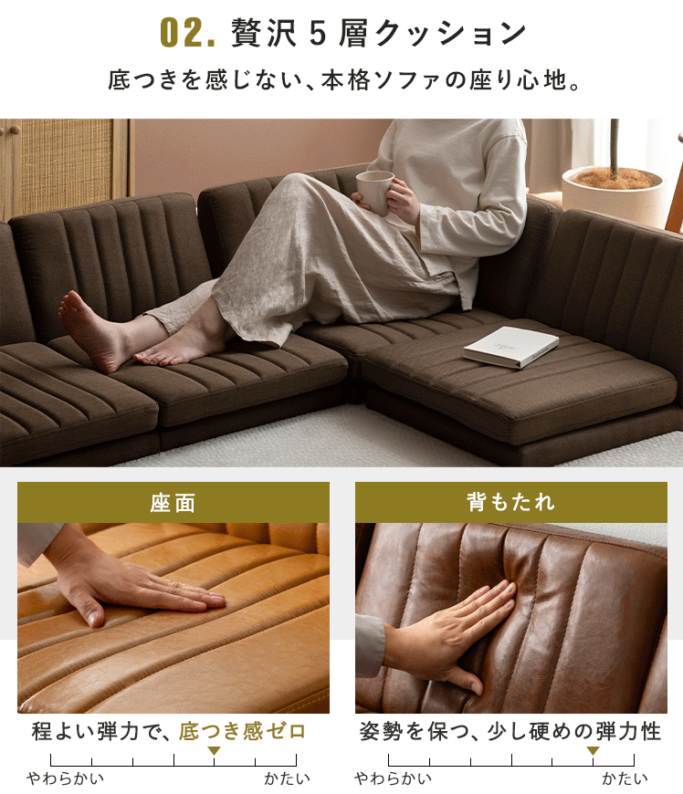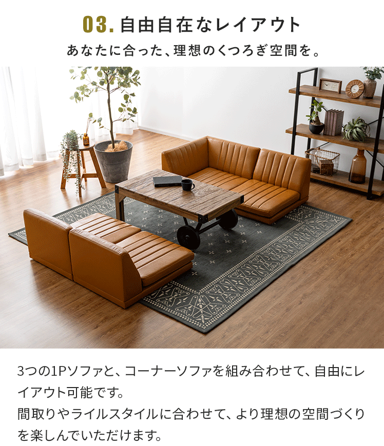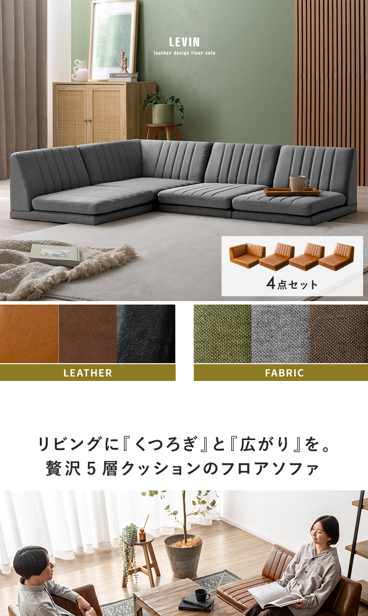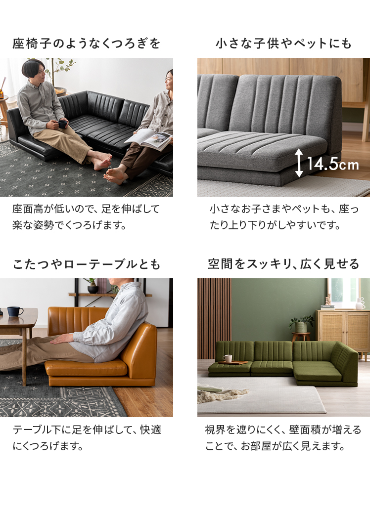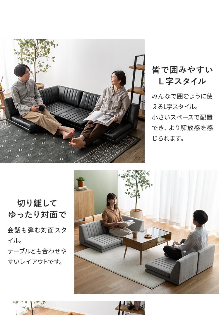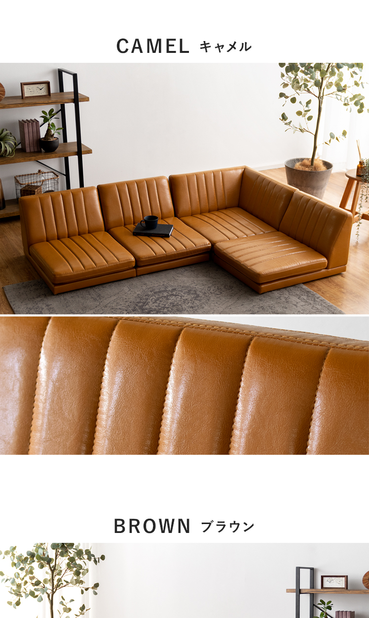 3人掛け 座椅子 フロアソファ コーナーソファ L型 レザー 布 シンプル ヴィンテージ インダストリアル モダン 北欧 セパレート おしゃれ ウレタン キャメル ブラウン ブラック グレー グリーン【5%OFFクーポン対象|公式なら毎日お得】