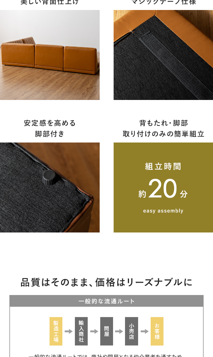 関連カテゴリ: オリジナル家具 > ソファ(オリジナル家具) | ソファ > 3人掛けソファ | ソファ > フロアソファ・ローソファ | ソファ > 革・合皮・レザーソファ | ソファ > ファブリック・布張りソファ