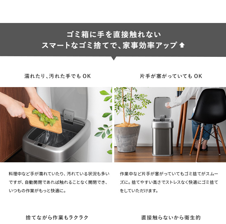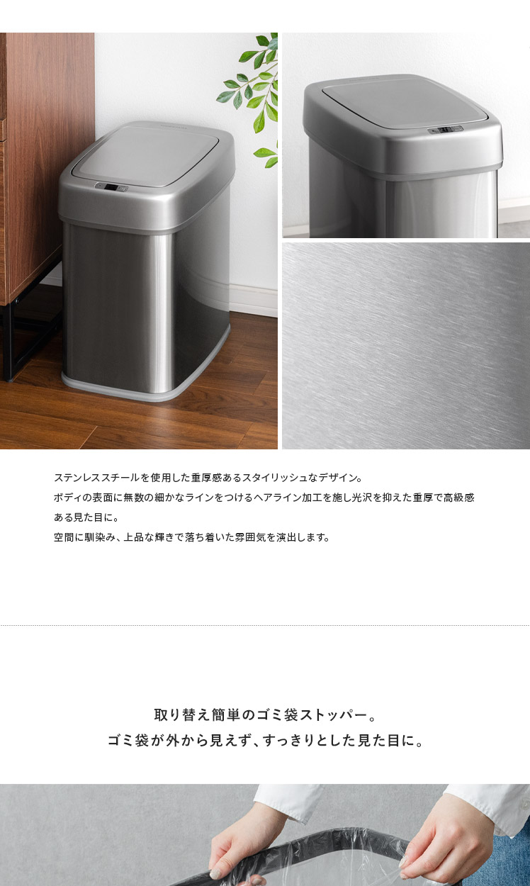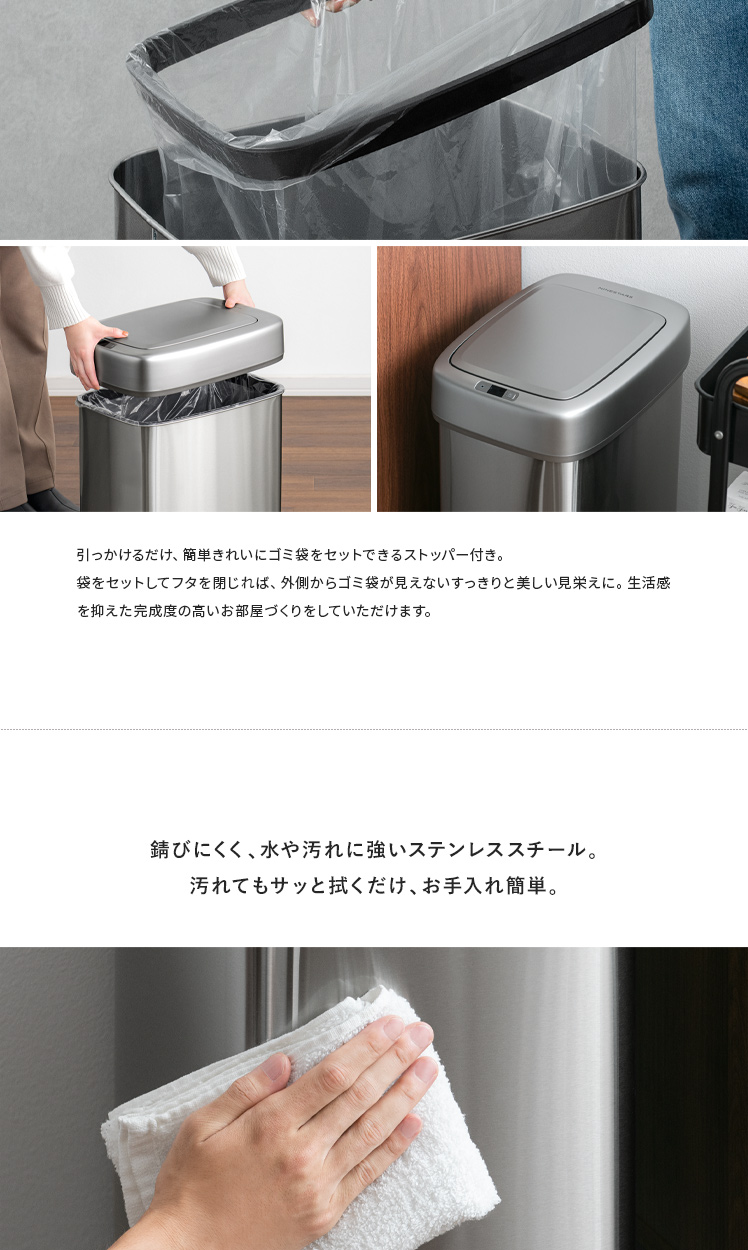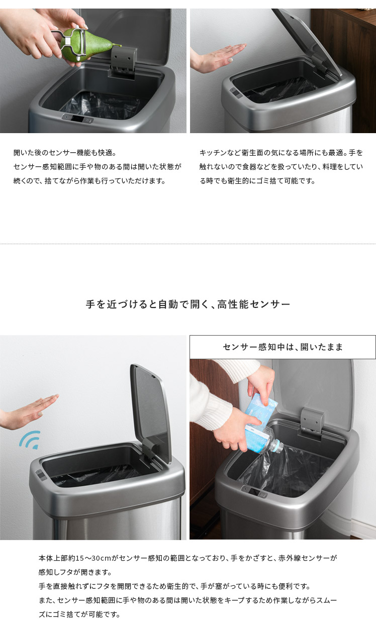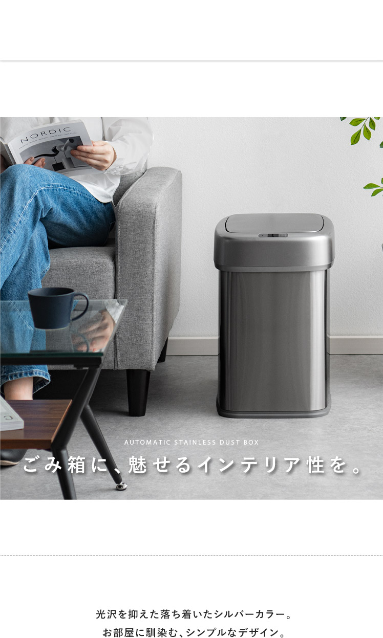 NINE STARS〔ナインスター〕 自動開閉ダストボックス 30L スリムタイプ/アメリカで高い販売実績を持つゴミ箱ブランド“NINESTARS(ナインスター)”が手掛ける、30Lの自動開閉ダストボックス。隙間に置きやすい、幅わずか約29cmのスリムボディ。高さ約43cmと低めの設計は座ったままでも使いやすく、デスクやソファの横やキッチンなど様々なシーンで活躍いたします。スマートなゴミ捨てができる高性能のダストボックスで、ストレスのない快適な暮らしを。