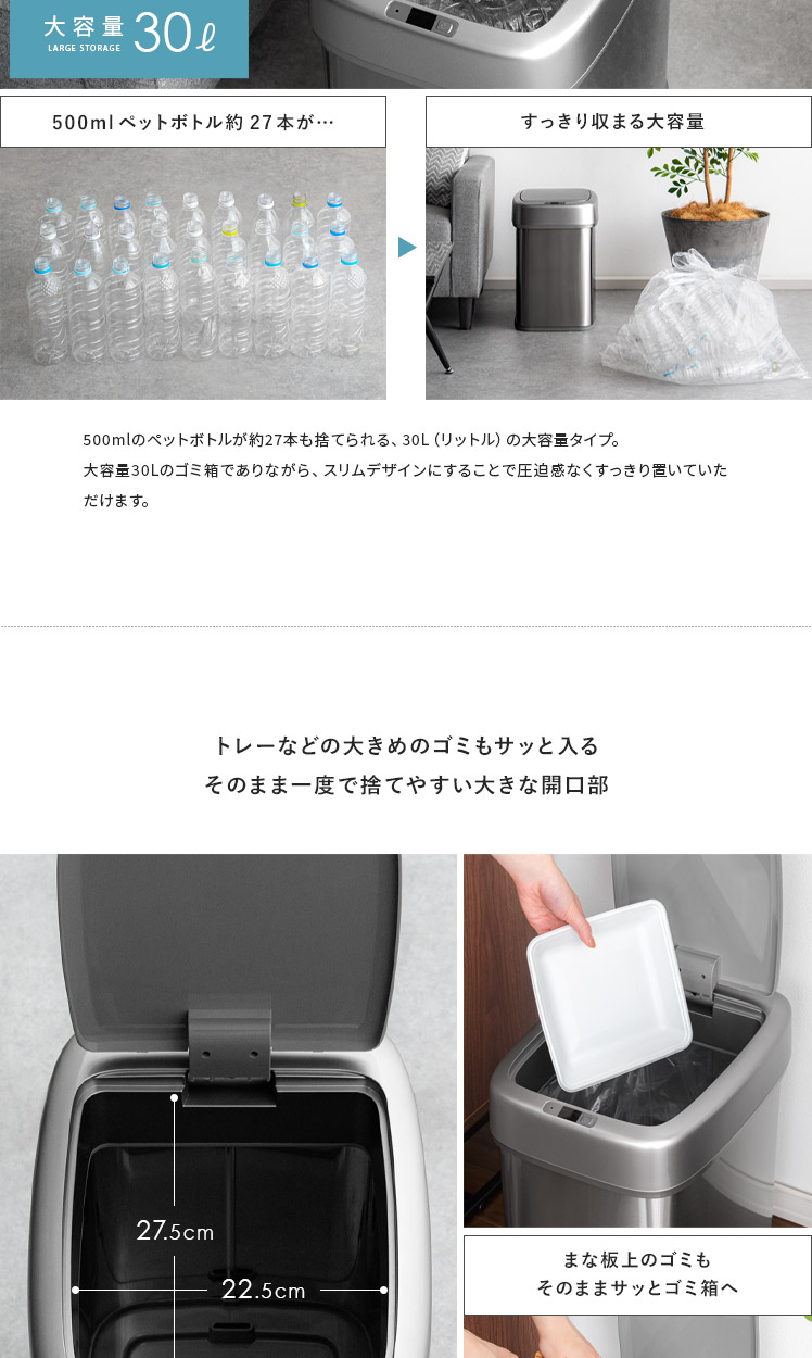 [30L] NINE STARS(ナインスター) 自動開閉ダストボックス 30L スリムタイプ