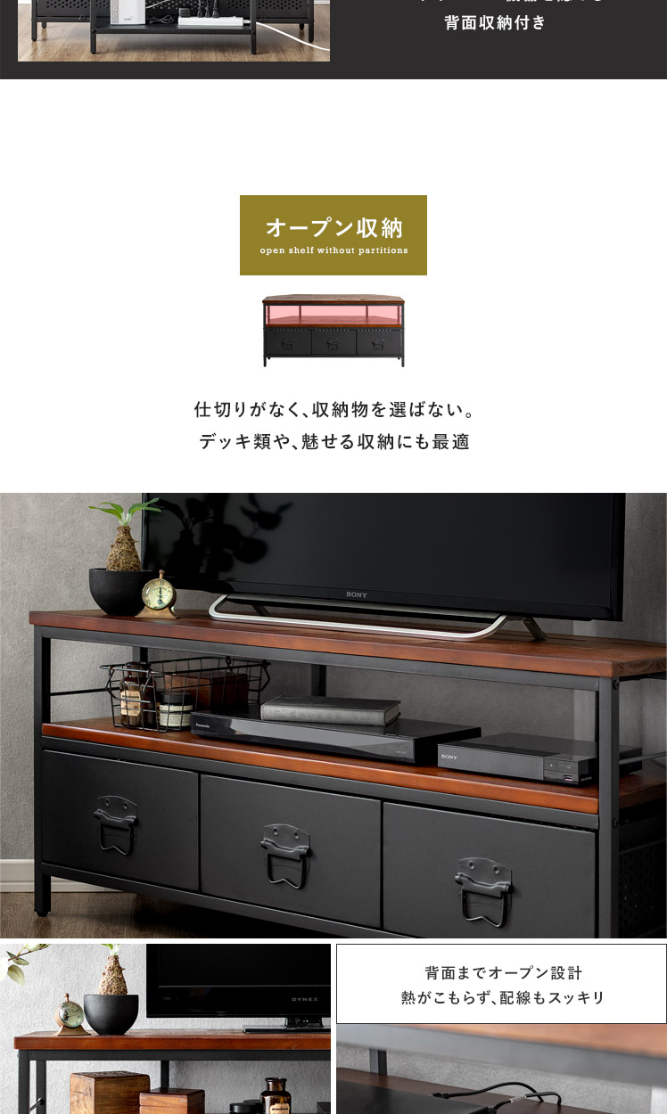 背面までオープン設計 熱がこもらず、配線もスッキリ