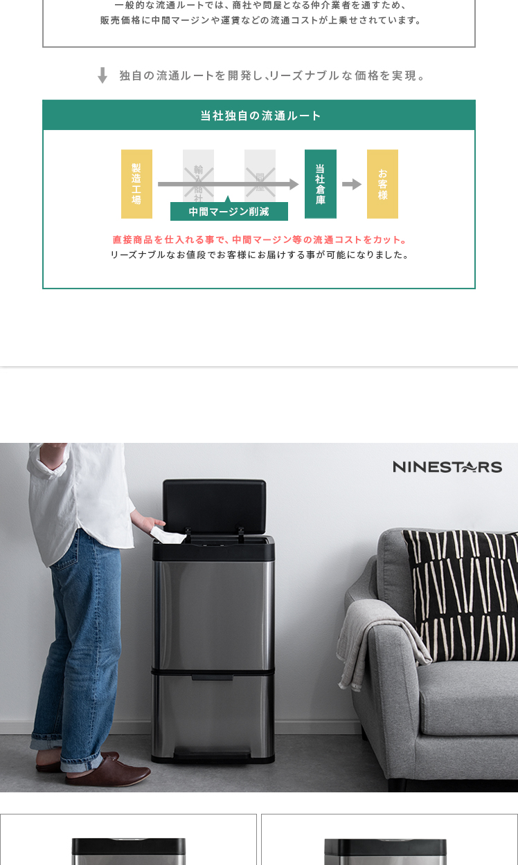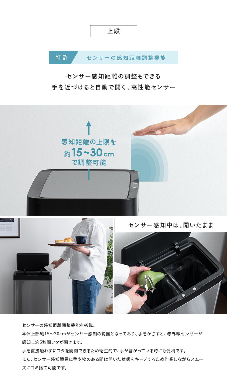 [50L] NINE STARS〔ナインスター〕 自動開閉ダストボックス 3分別タイプ