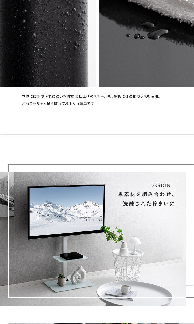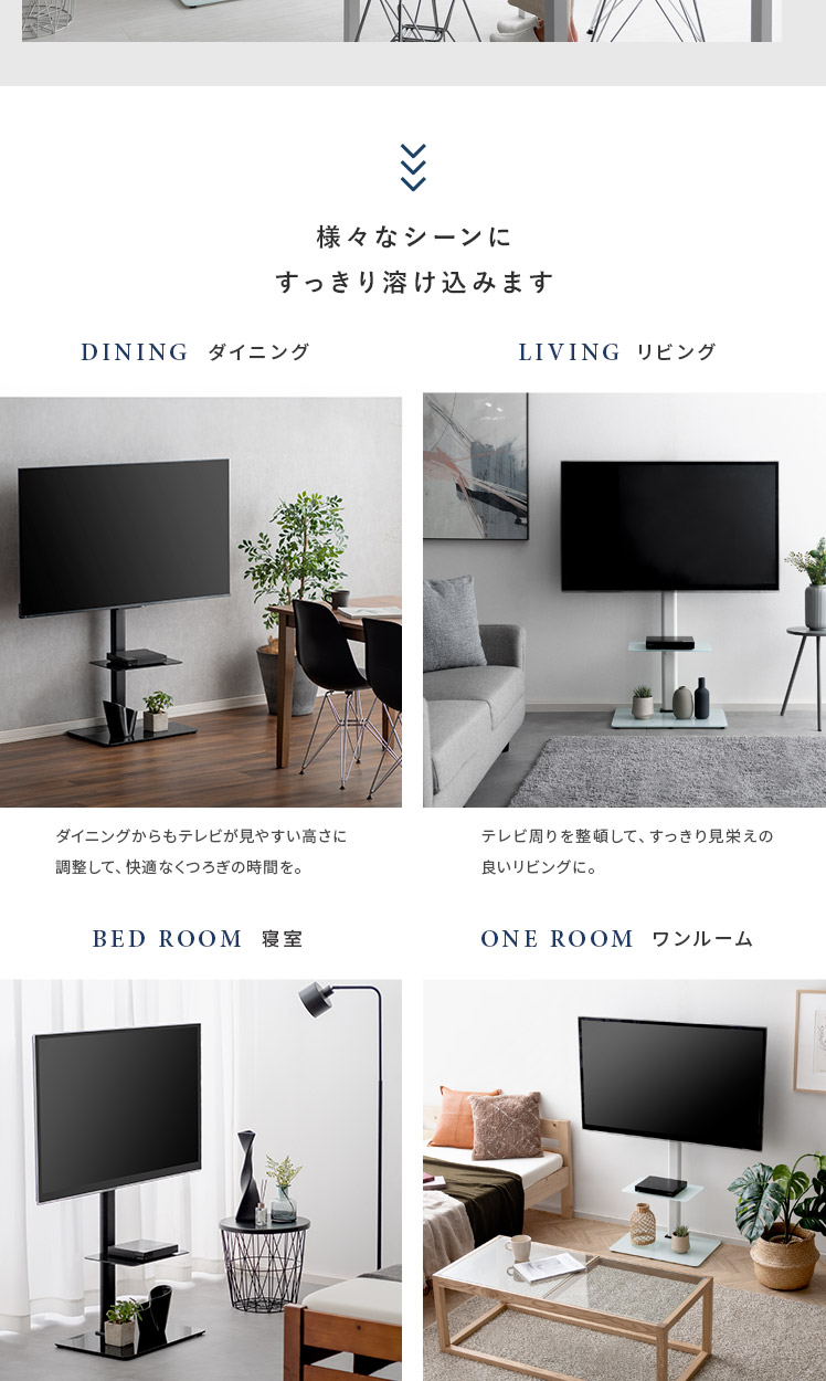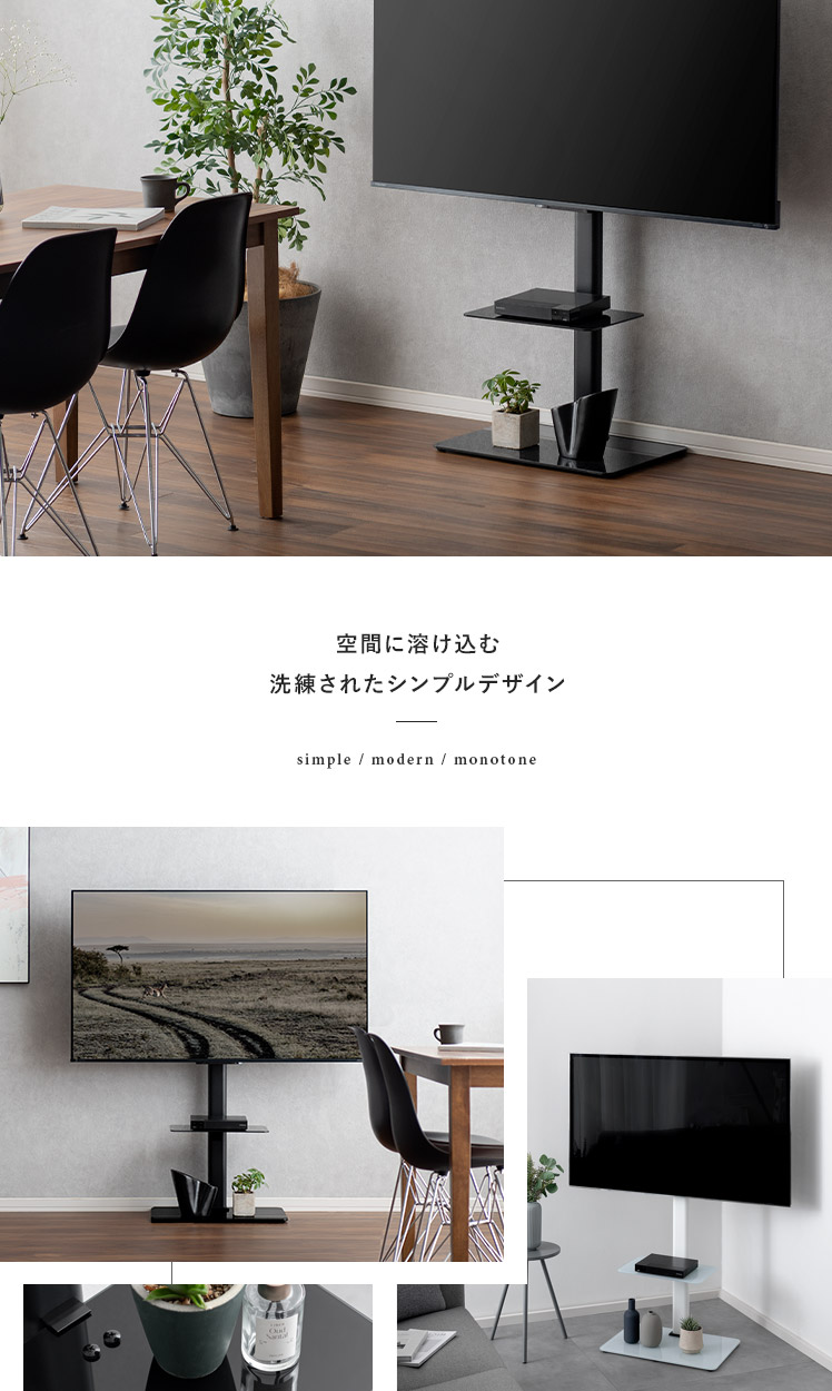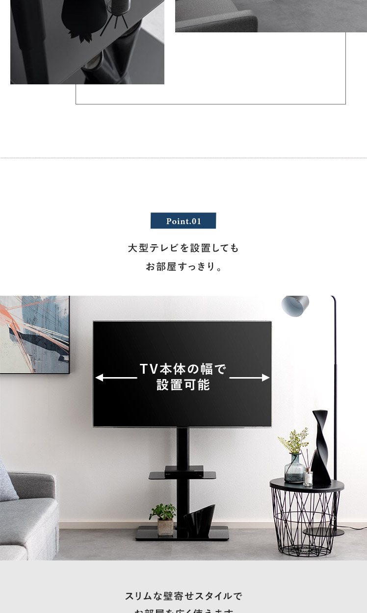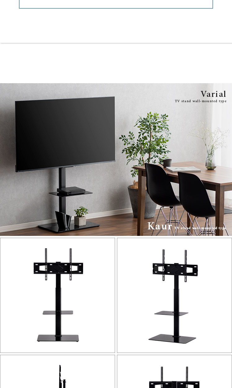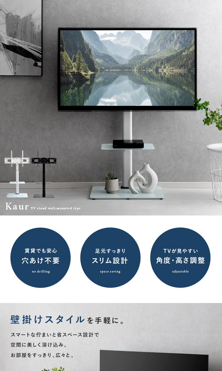 壁寄せテレビスタンド Kaur〔カウル〕/壁掛けスタイルを手軽に。スマートな佇まいと省スペース設計で空間に美しく溶け込み、お部屋をすっきり、広々と。