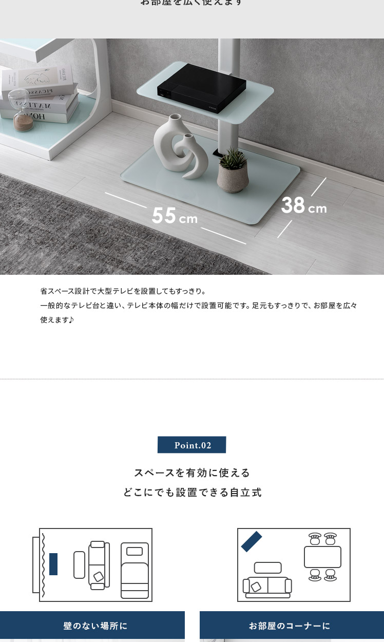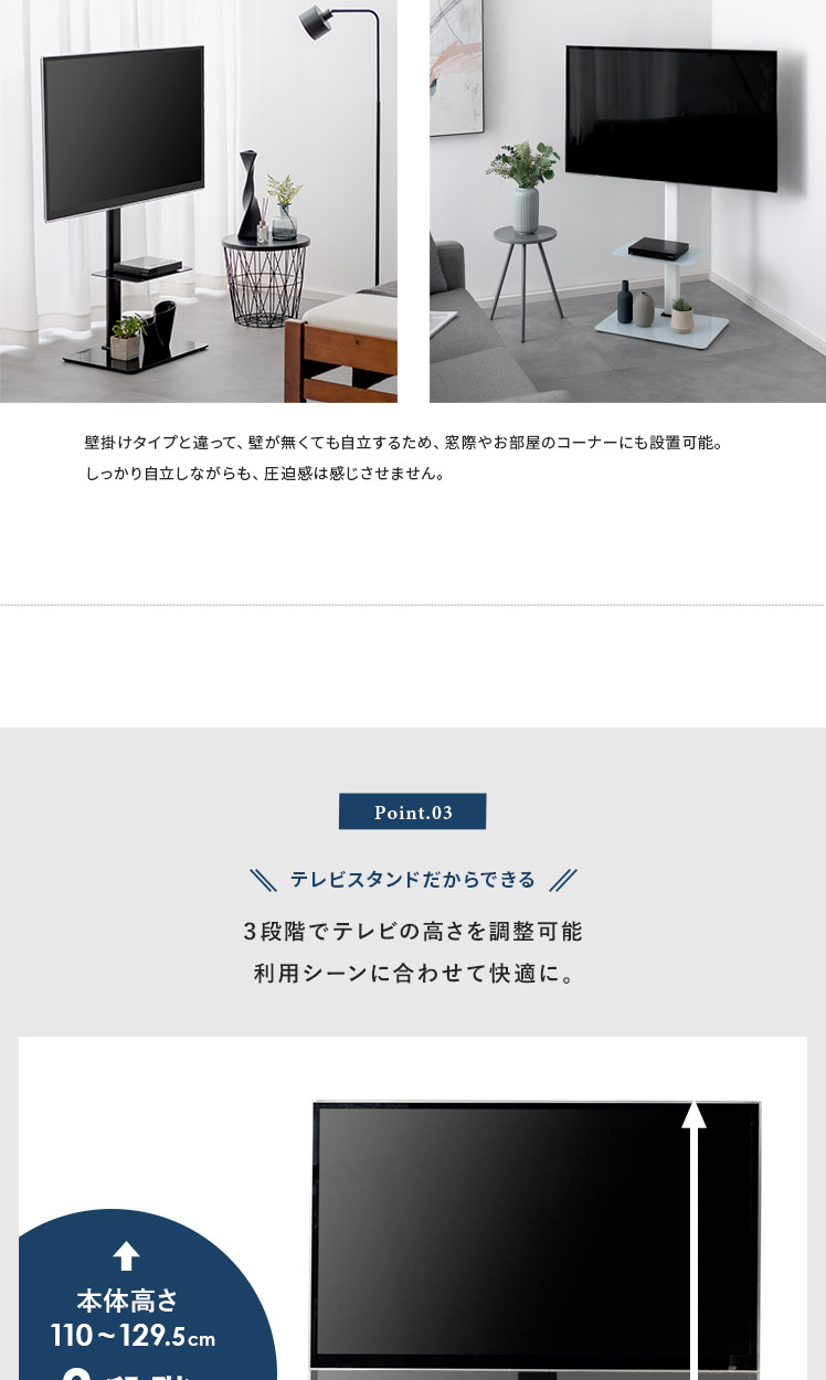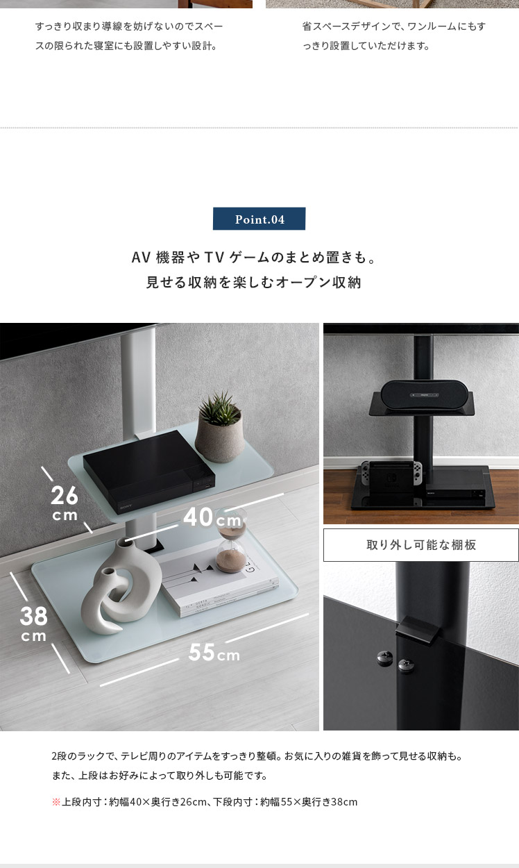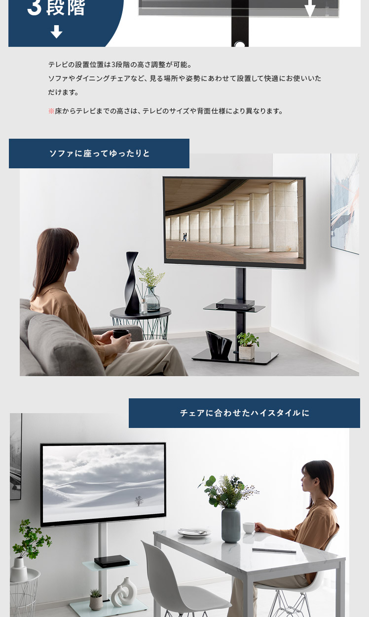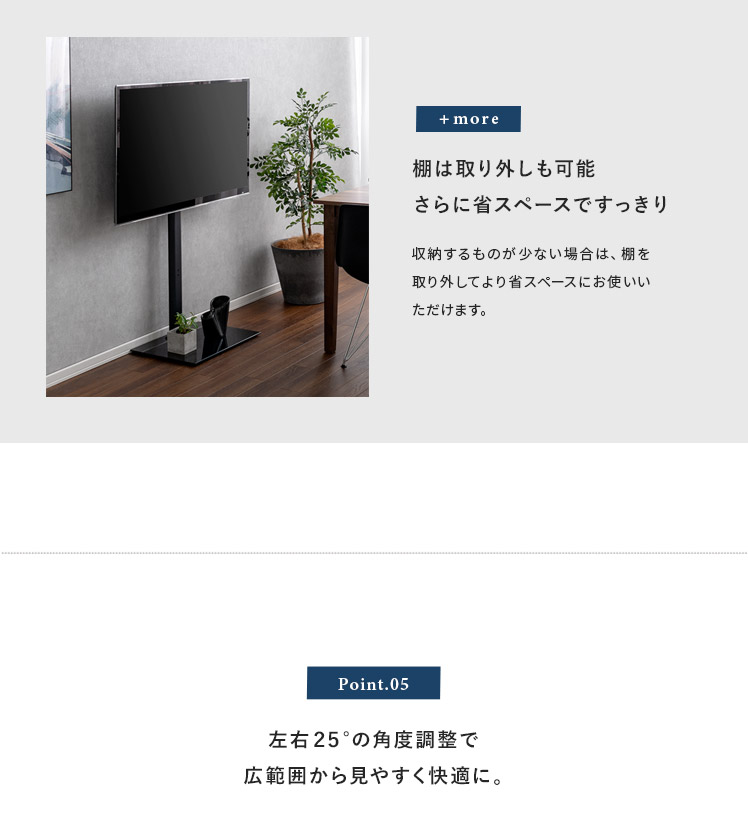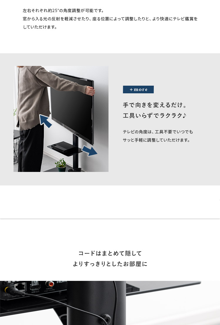 壁寄せテレビスタンド Kaur〔カウル〕/壁掛けスタイルを手軽に。スマートな佇まいと省スペース設計で空間に美しく溶け込み、お部屋をすっきり、広々と。