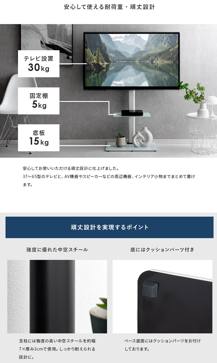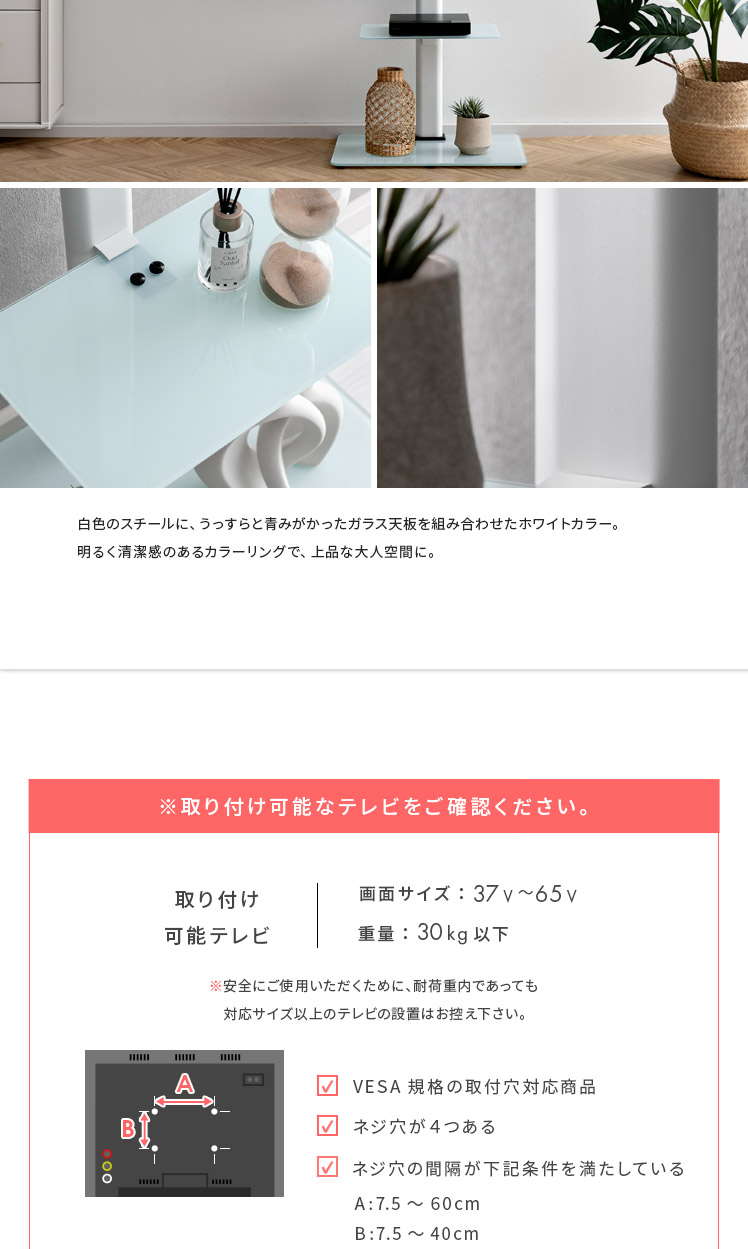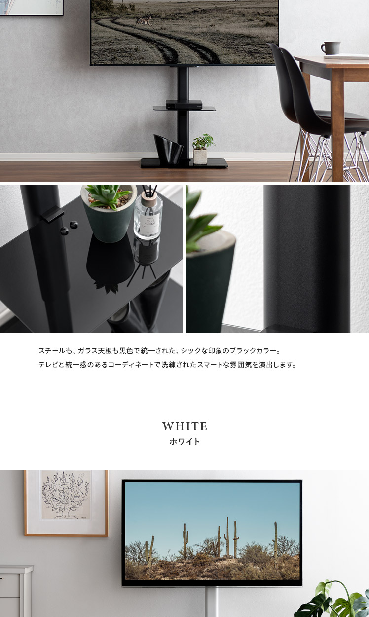 テレビラック シンプル スチール ガラス ブラック ホワイト【公式限定|いつでも3%OFFクーポン対象】