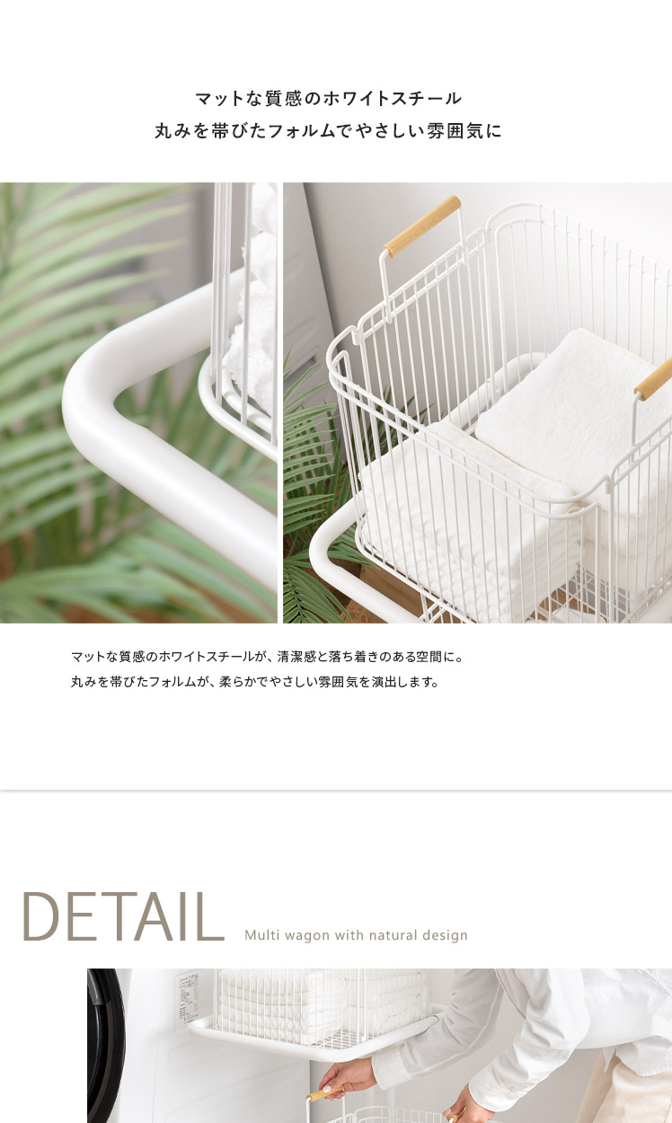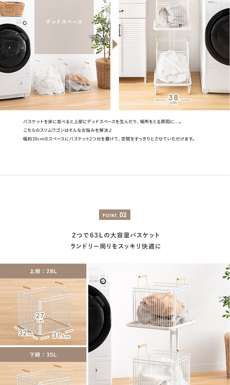 洗濯ワゴン 天然木 2段 スリム カゴ ホワイト【5%OFFクーポン対象|公式なら毎日お得】
