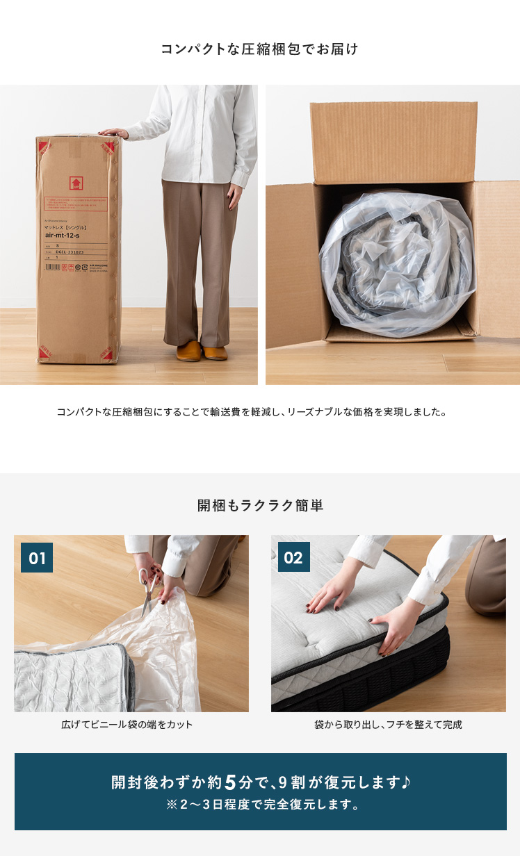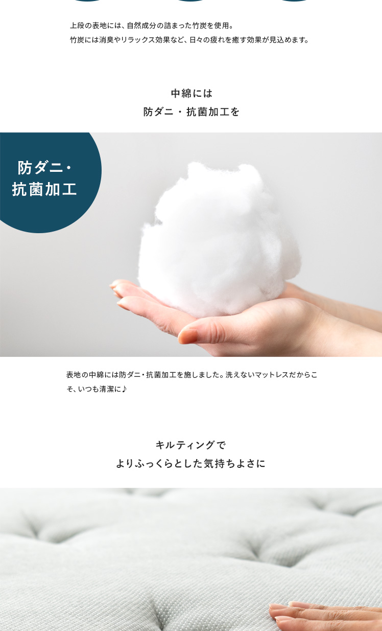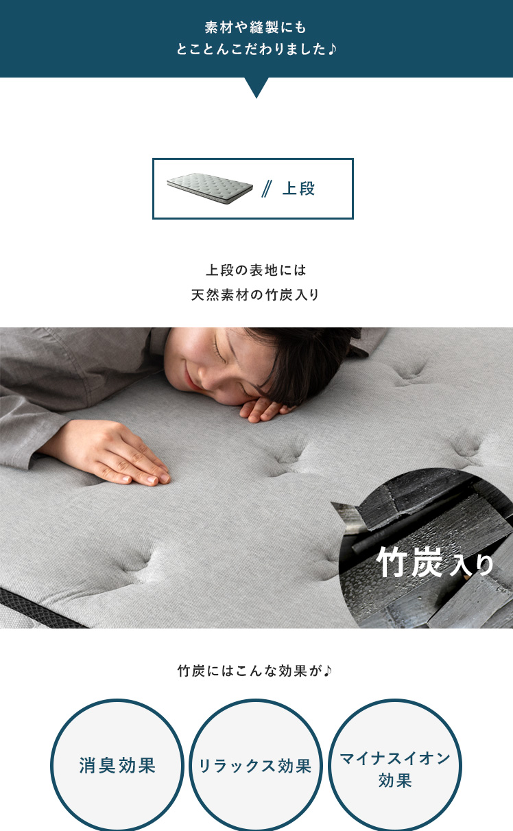 極厚25cm 竹炭入り 消臭効果 防ダニ 抗菌加工 圧縮梱包 上下分割可能【公式限定|いつでも3%OFFクーポン対象】