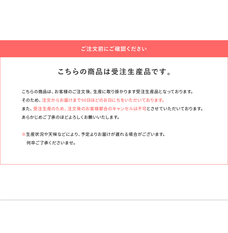 ※こちらの商品は受注生産品のため、注文後のお客様都合のキャンセル不可となります