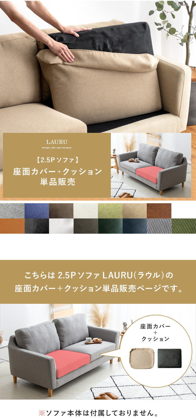 【座面カバー&クッション 部品単体販売】2.5Pデザインソファ LAURU〔ラウル〕