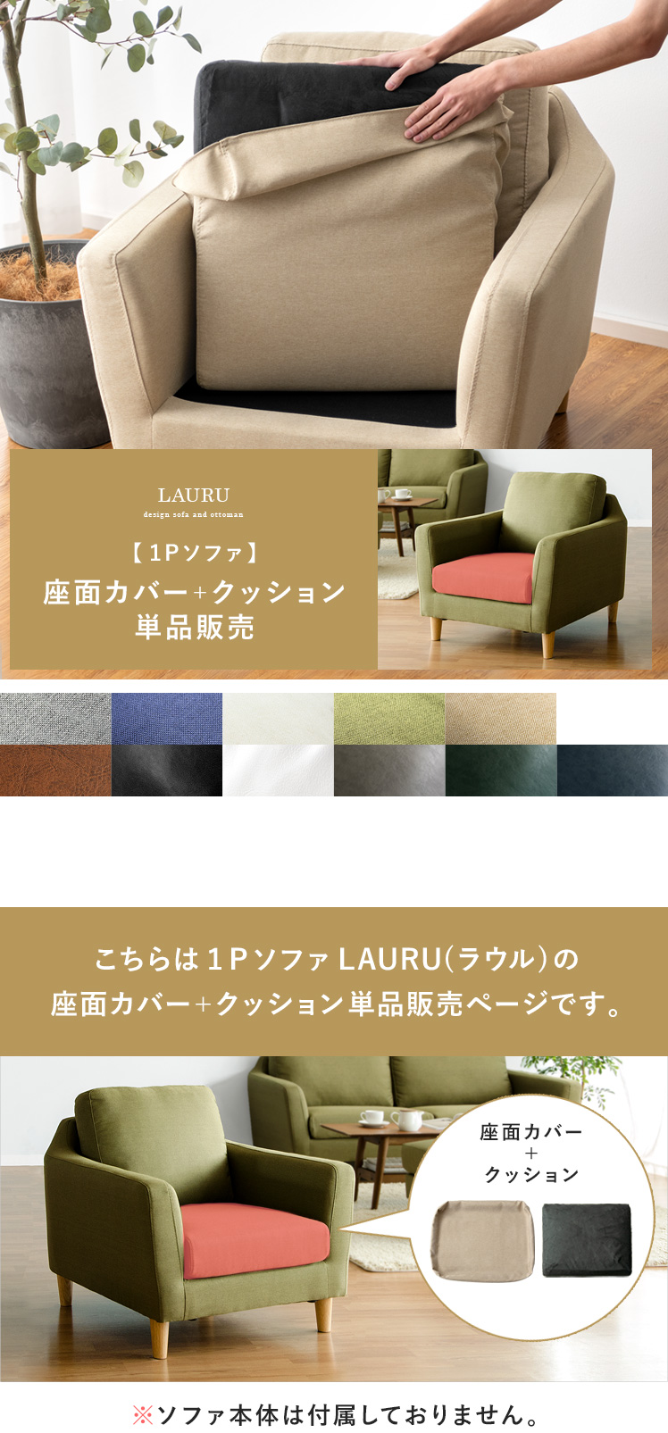 【座面カバー&クッション 部品単体販売】1Pソファ LAURU〔ラウル〕