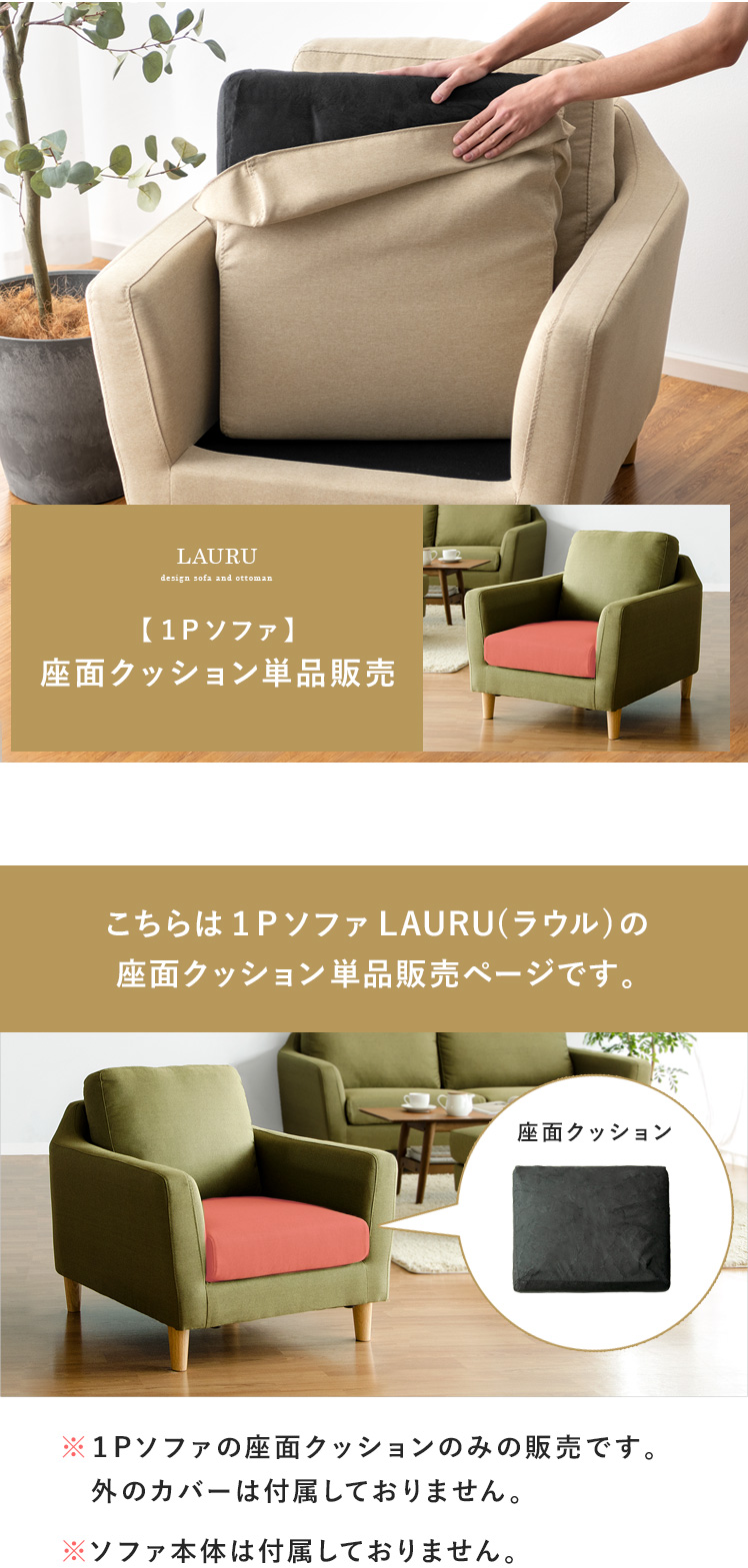 【座面クッション 部品単体販売】1Pソファ LAURU〔ラウル〕