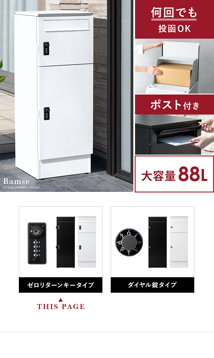 [86L] 複数投函できるポスト一体型宅配ボックス Bamse(バムセ) [ゼロリターンキータイプ]