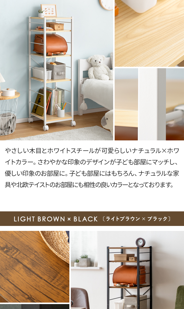 キャスター付き 収納 マルチラック 子ども部屋 可動棚