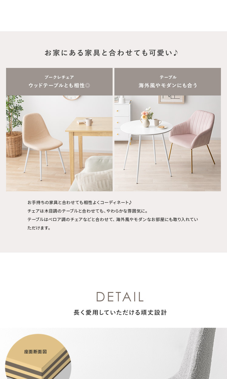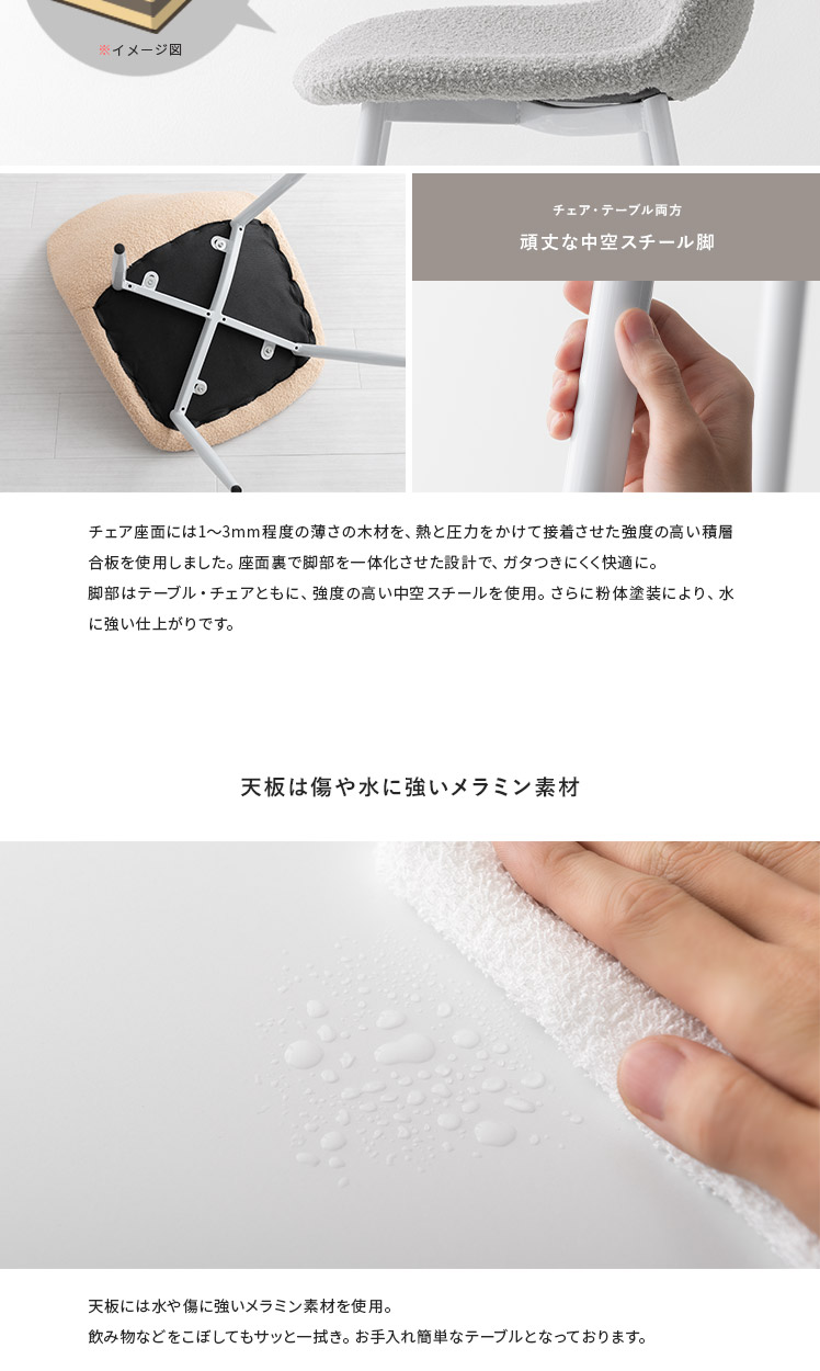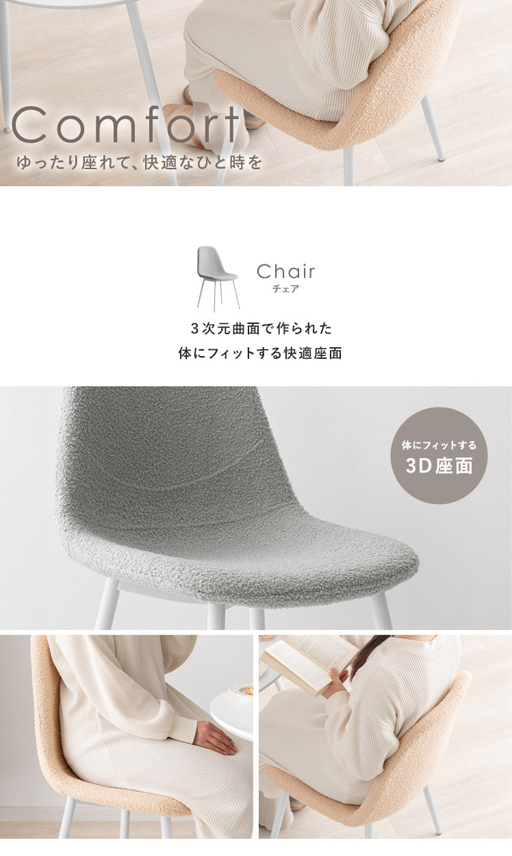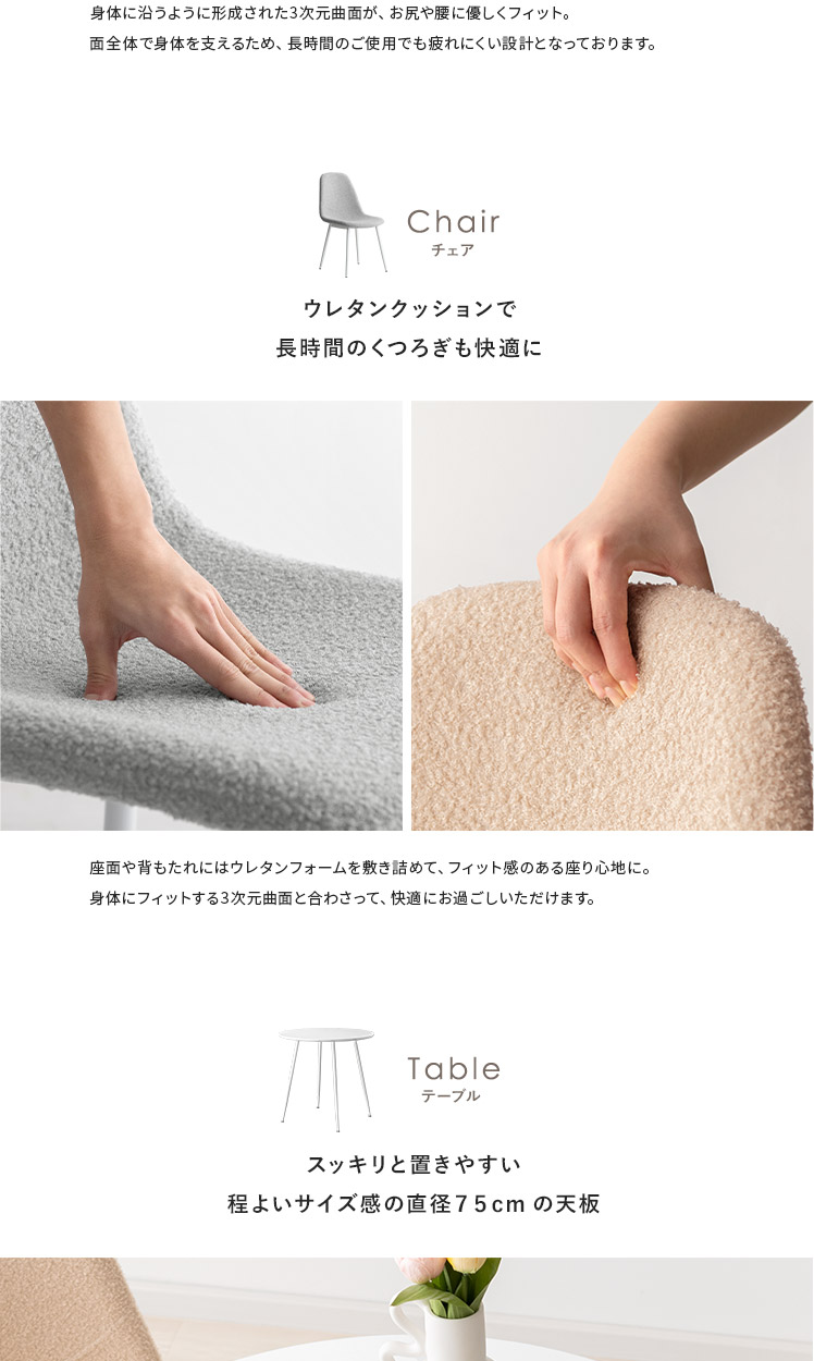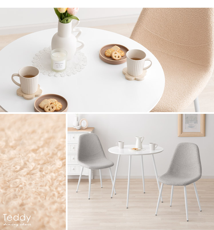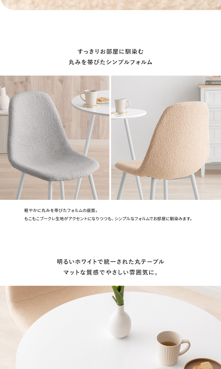 ダイニングテーブル&チェア3点セット Teddy〔テディ〕/置くだけで憧れのダイニング空間を作り出すダイニングセット“Teddy(テディ)”チェアは華やかでフェミニンなブークレ生地を採用し、甘すぎない大人可愛い雰囲気を演出。明るいホワイトで統一されたテーブルは、お料理やお気に入りの食器をより引き立て、毎日の食事をより幸せな時間に♪シンプルで大人可愛いダイニングセットで、フォトジェニックな韓国風ダイニング空間をご自宅に。