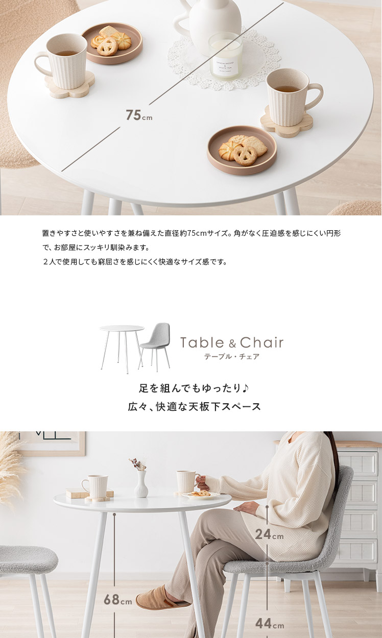 【セット】[直径75] ダイニングテーブル&チェア3点セット Teddy〔テディ〕