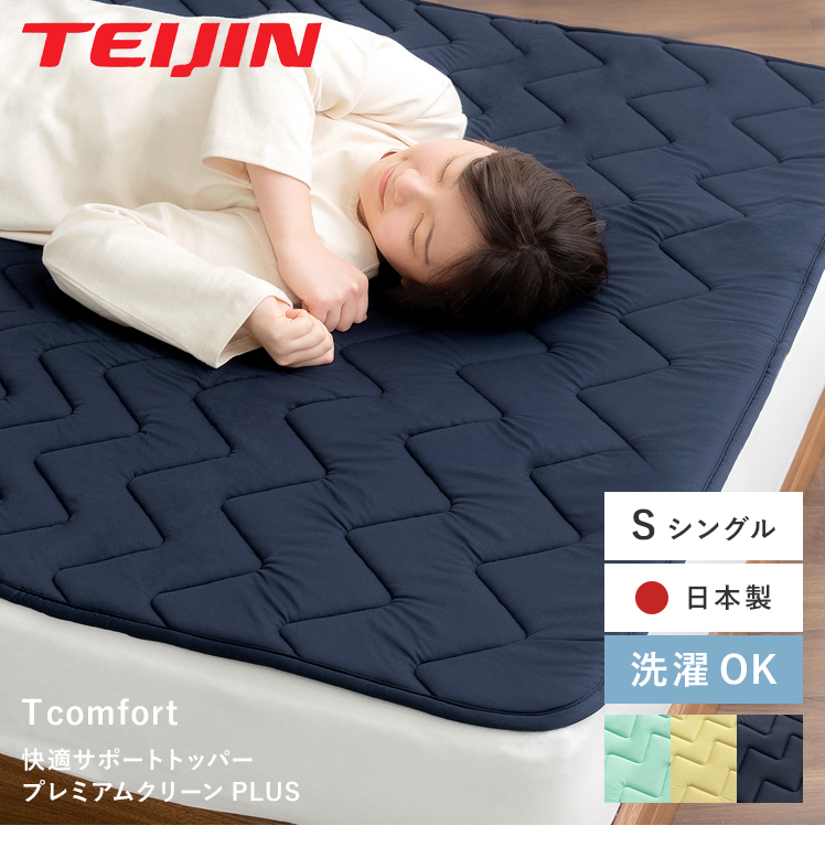 Tcomfort 快適サポートトッパー プレミアムクリーンPlus シングルサイズ/厚みたった1cmでも、しっかり体を支えて体圧分散♪体の沈み込みを軽減し、寝姿勢を改善。腰や背中への負担を減らし、心地よい眠りをサポートいたします。使い続けてへたってきたり、買ったけど体に合わなかったマットレスも、上から敷くだけで気軽に寝心地グンッとUP。あなた史上、最高の快眠をお届けいたします♪