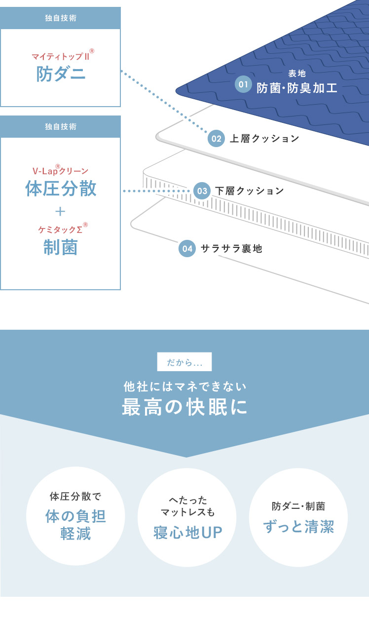 体圧分散 防ダニ 防臭 4層構造
