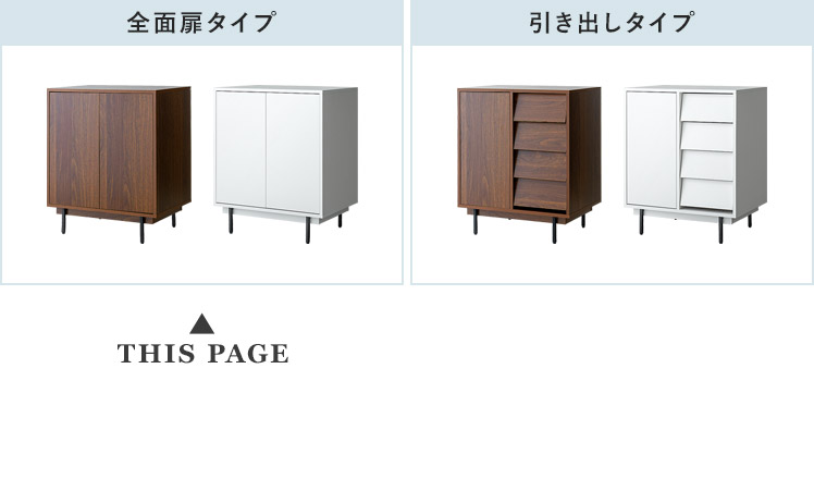 洗練されたシンプルデザインが空間に映える全面扉タイプ。収納物に合わせて高さ調節できる可動棚で、無駄なくたっぷり収納できます。
