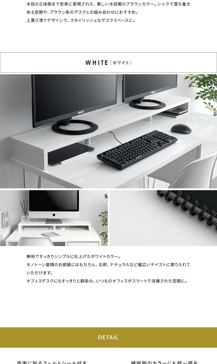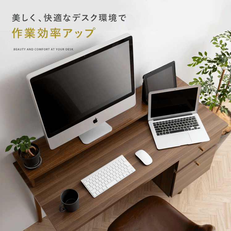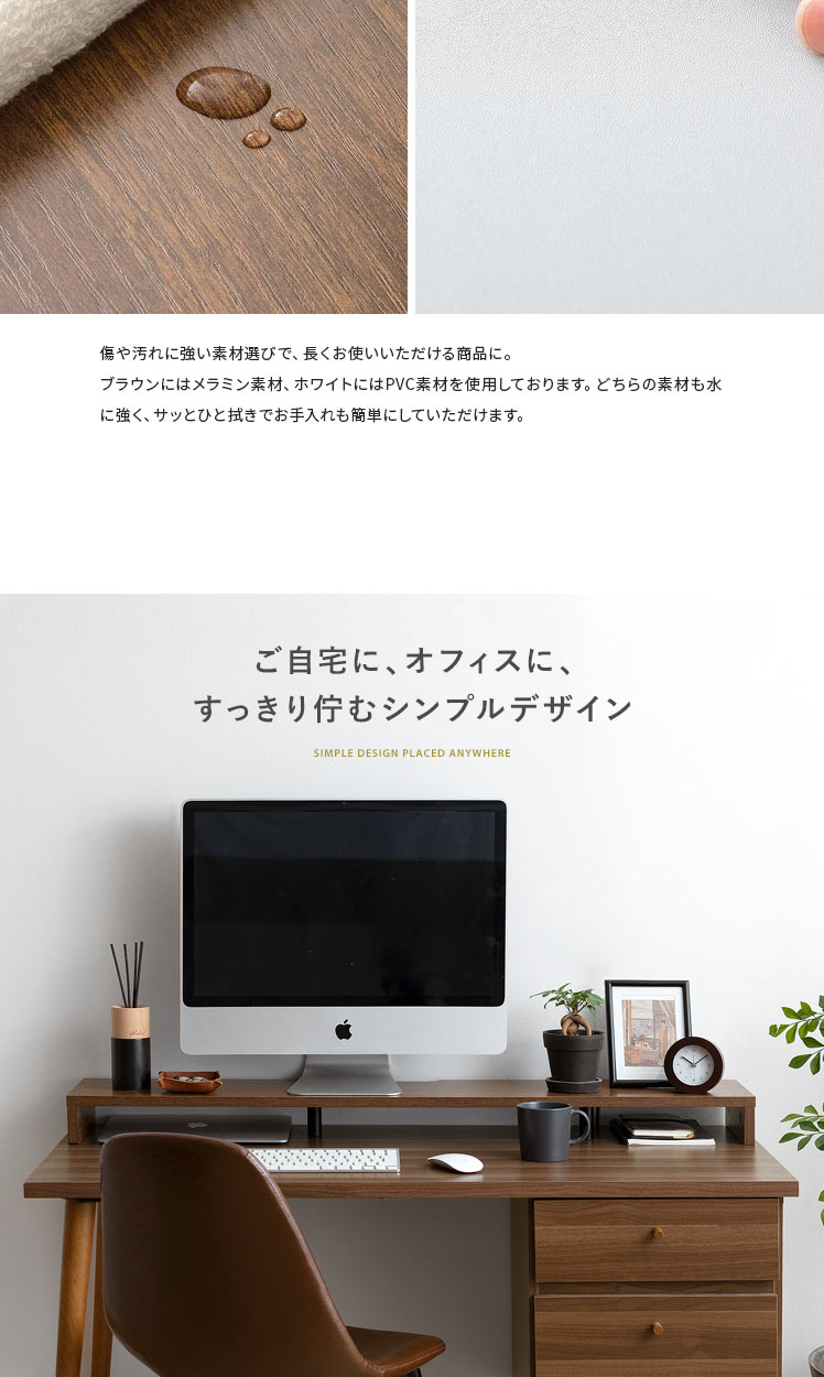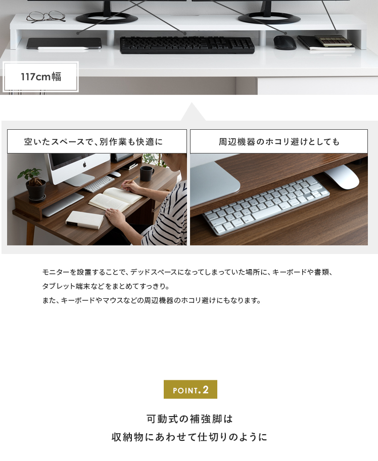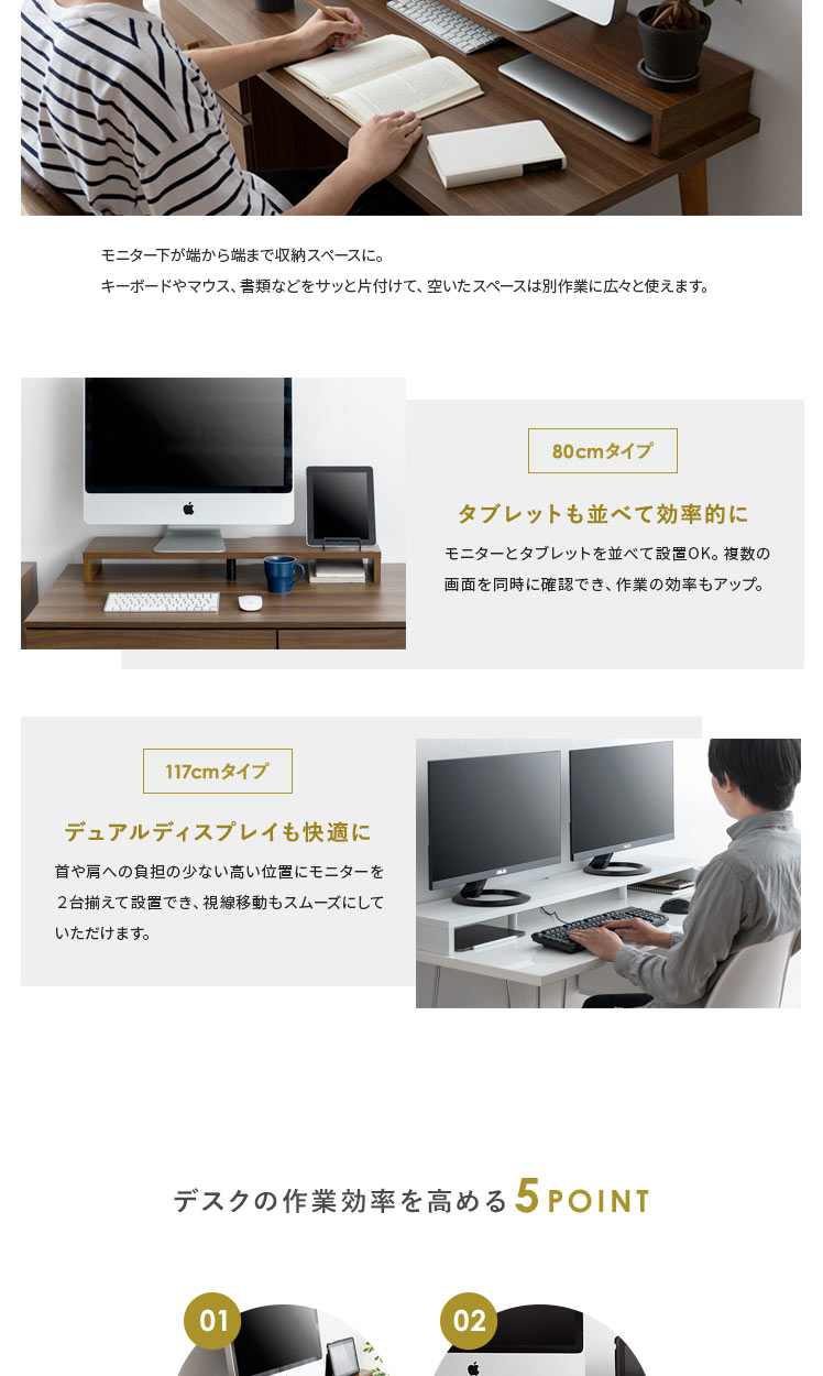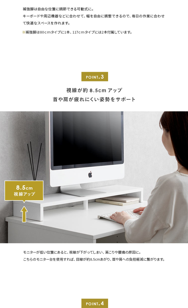 80cm幅デスク対応モニタースタンド KIRK〔カーク〕/デスクを最大限に活用できるモニター台。モニター下の空間を有効活用して、キーボードやタブレット、書類などをすっきり整理していただけます。また、モニターの設置位置を高くすることで視線が上がり首や肩への負担を軽減する効果も。すっきり美しく、快適性にもこだわった、作業効率の高まるデスク環境づくりを。