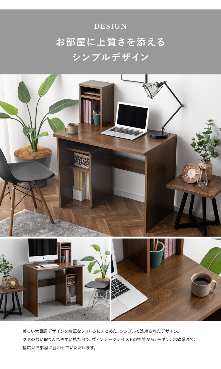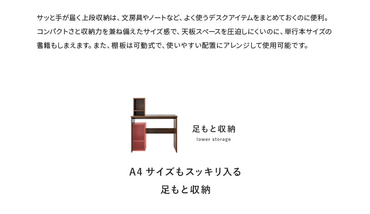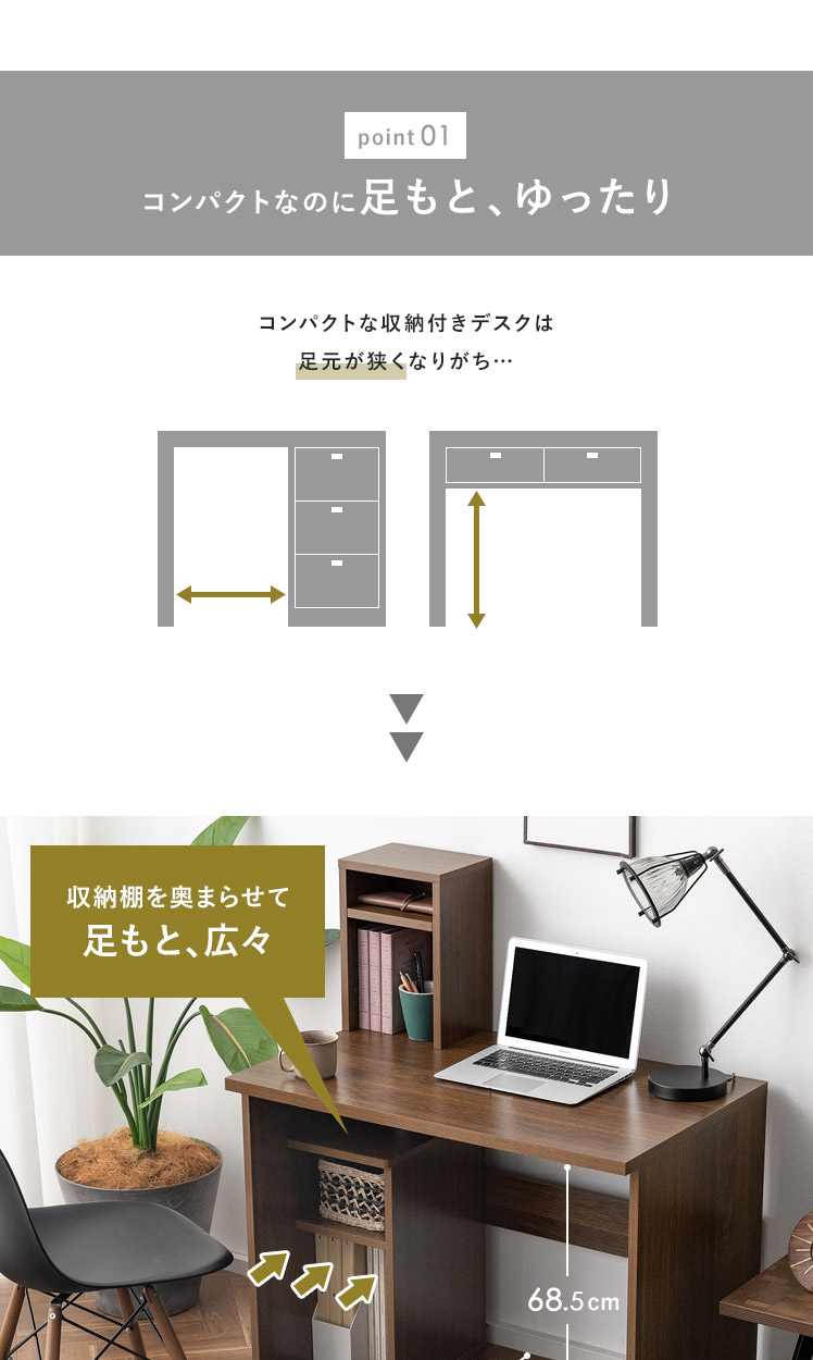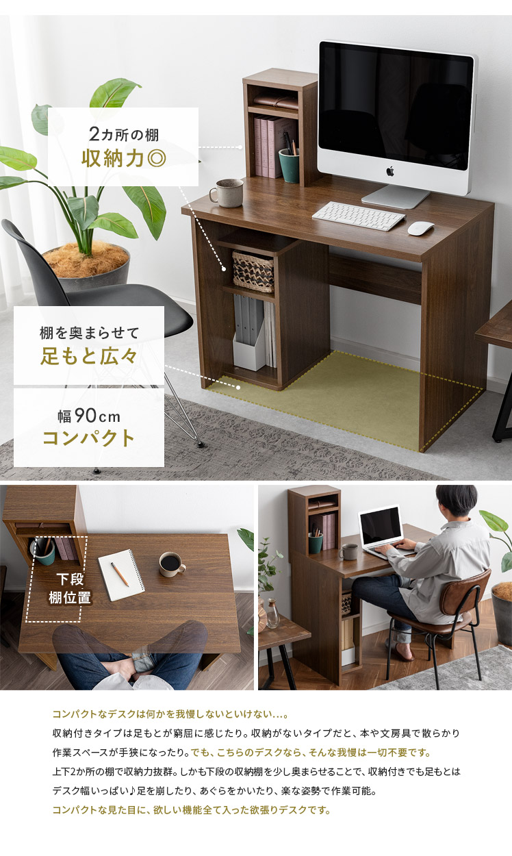コンパクトでも足元広々 収納付き 可動棚 木製 パソコンデスク シンプル 学習机 勉強机