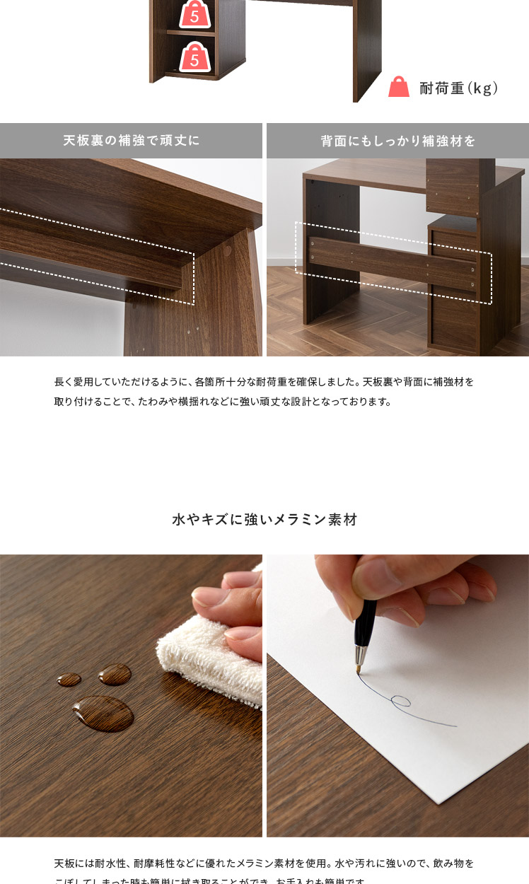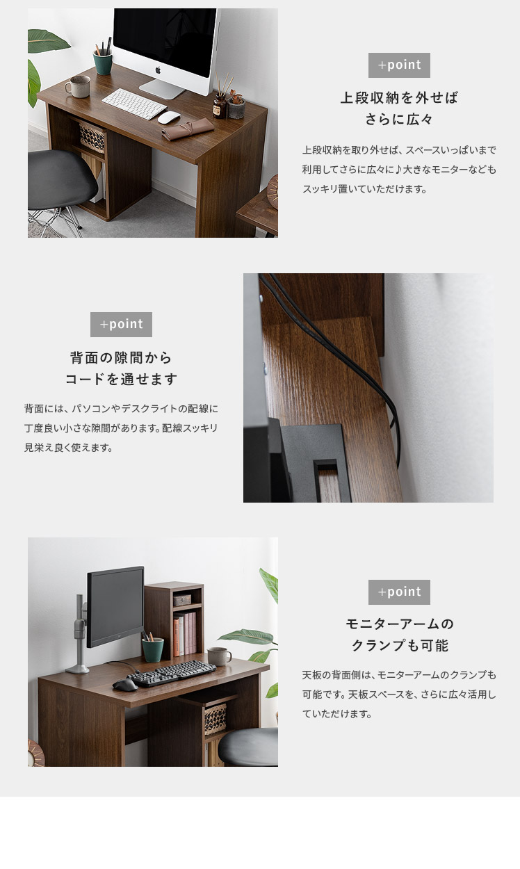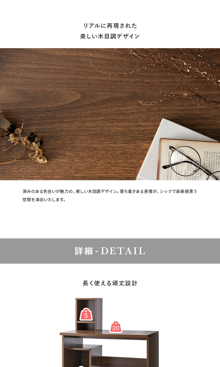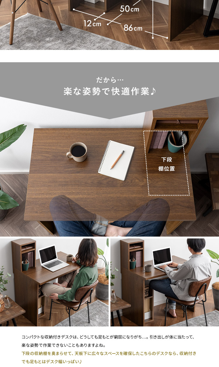 コンパクトでも足元広々 収納付き 可動棚 木製 パソコンデスク シンプル 学習机 勉強机