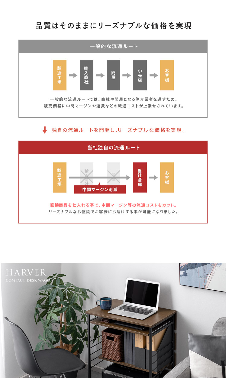 [幅60] コンパクトデスクワゴン Harver〔ハーバー〕