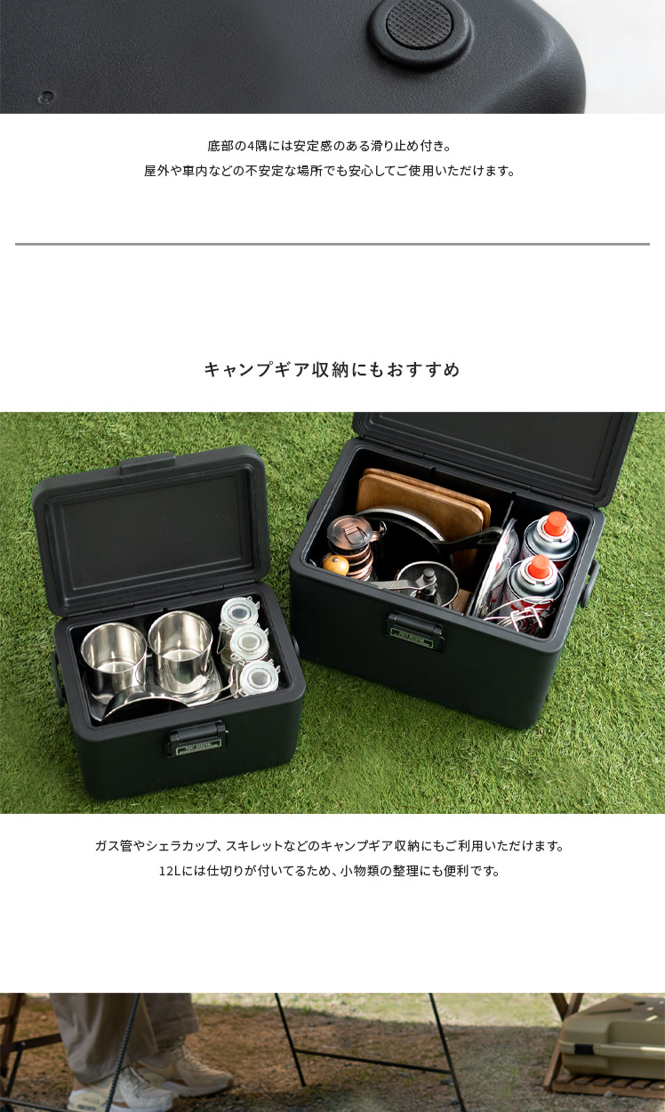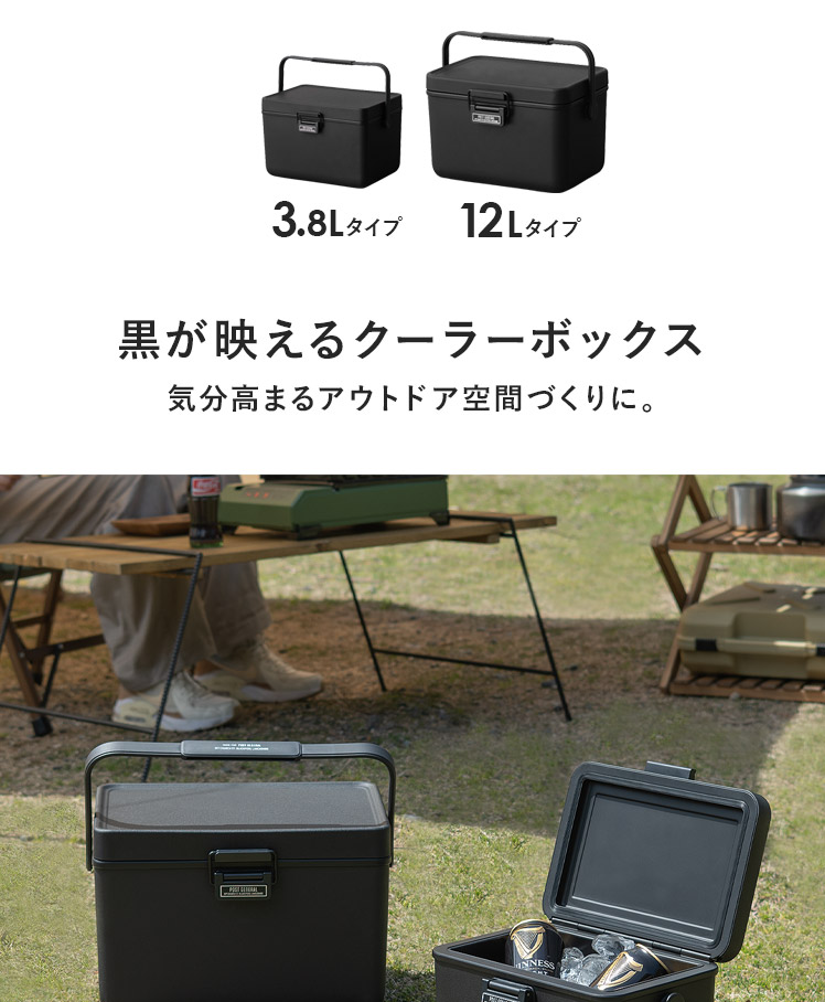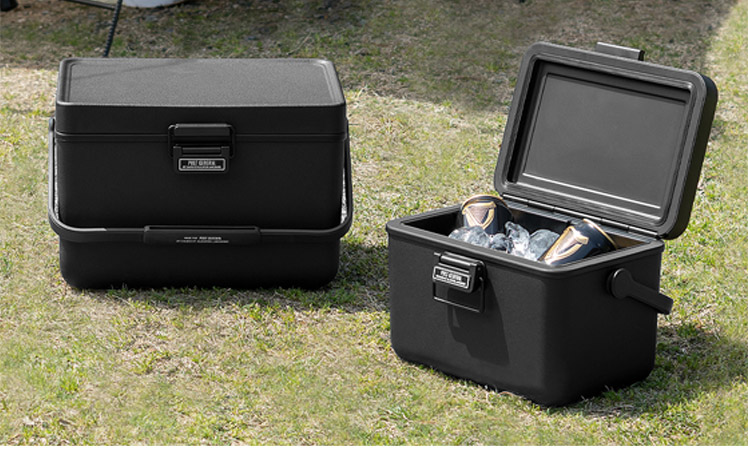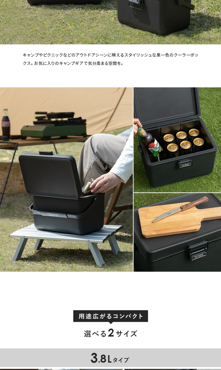 THE ICE ERA HARD-SHELL COOLER 3.8L/キャンプやピクニックなどのアウトドアシーンに映えるスタイリッシュな黒一色のクーラーボックス。お気に入りのキャンプギアで気分高まる空間を。