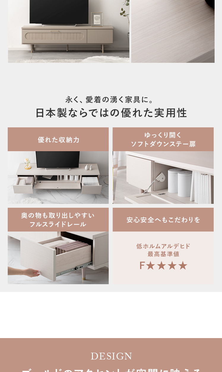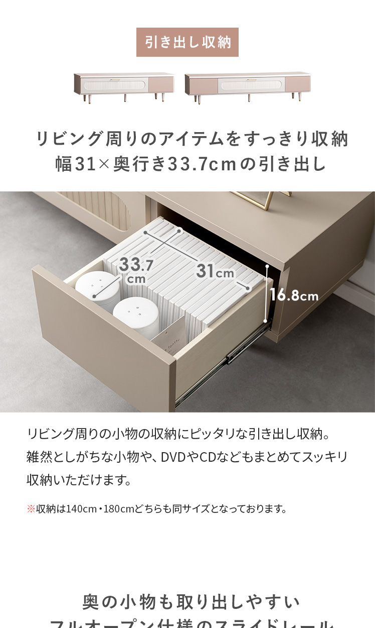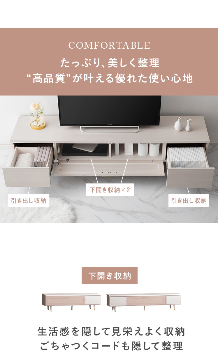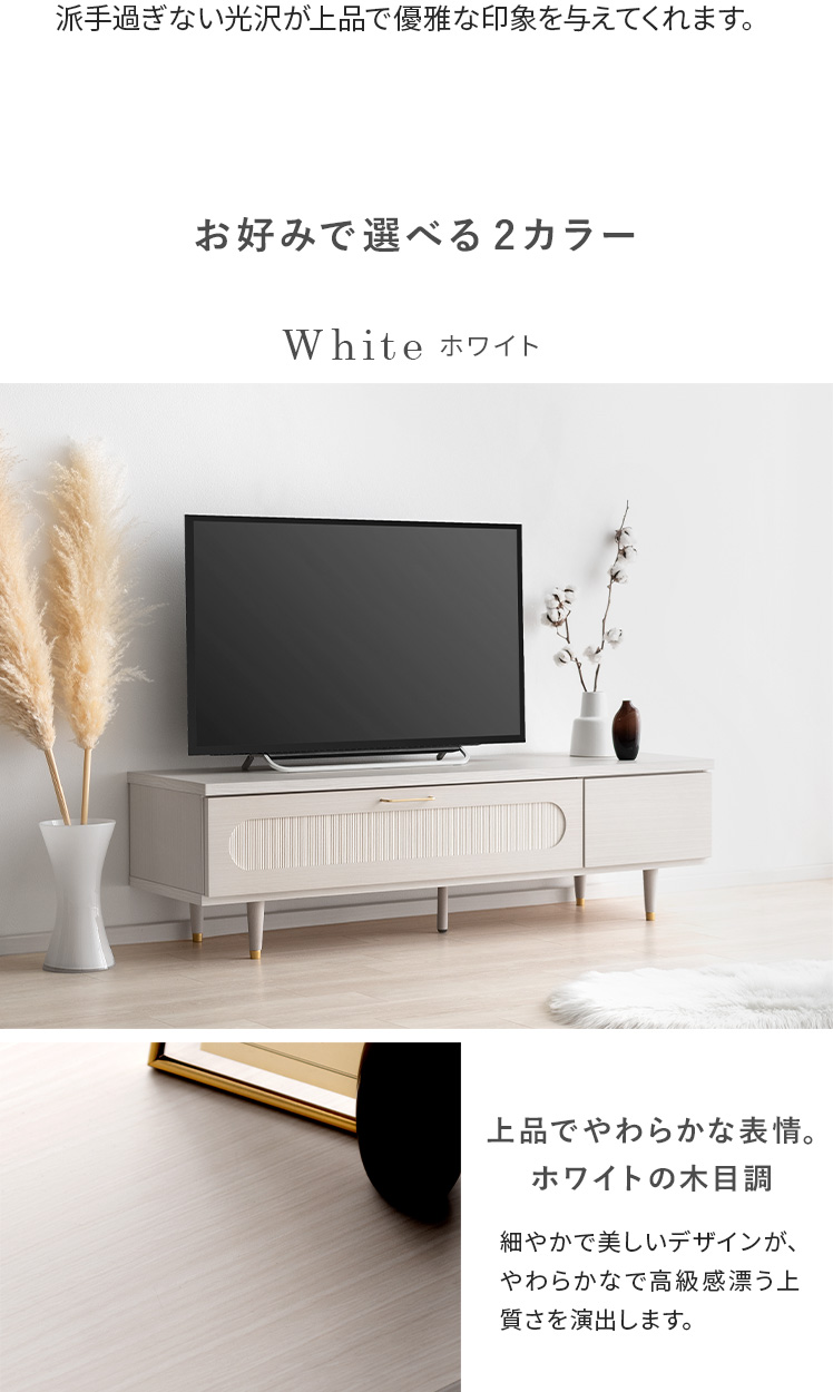 日本製完成品 テレビボード Teena〔ティーナ〕 幅180cmタイプ/丁寧に作り上げた高品質な日本製テレビボード"Teens(ティーナ)”真鍮をあしらった美麗なデザインが、高級感あるリビング空間を演出。使い心地にもこだわり、フルオープン仕様の引き出し収納や、ゆっくりと開閉するソフトダウンステーを採用しました。“日本製&高品質”が叶える優れたデザインと使い心地のテレビボードで、上質なリビング空間をご自宅に。