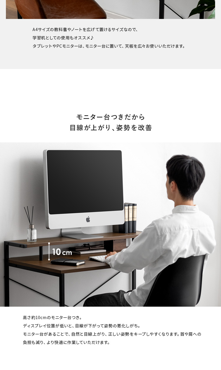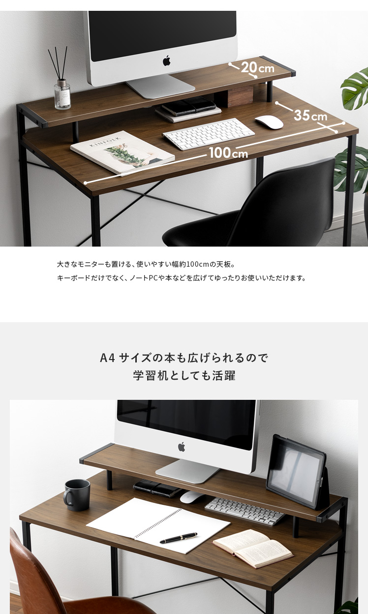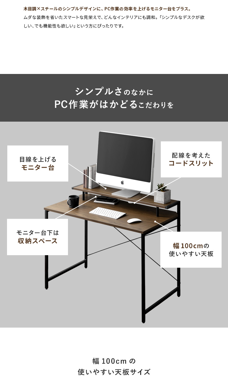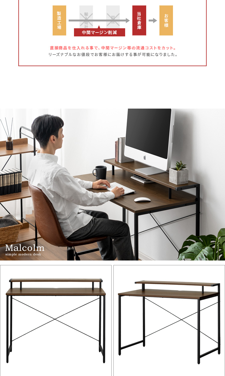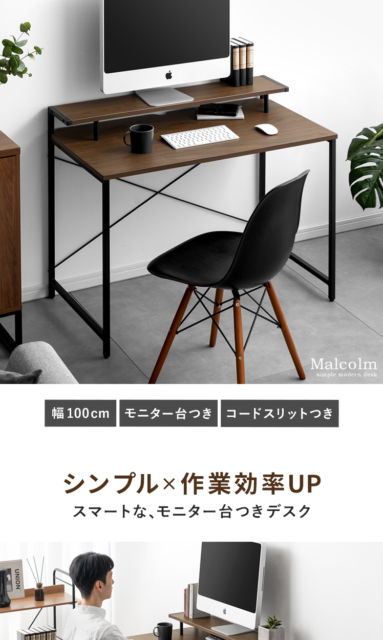 [幅100] モニター台付きシンプルデスク Malcolm〔マルコム〕