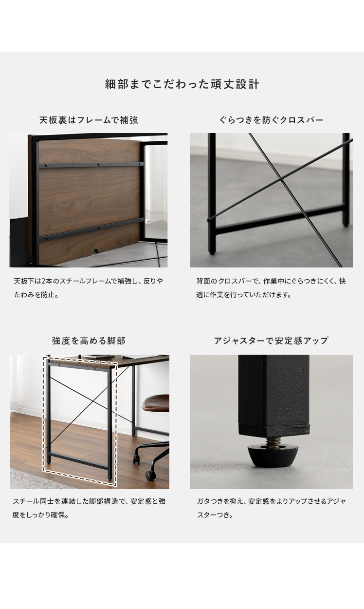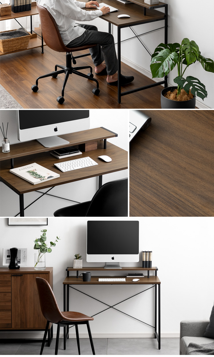 モニター台付きシンプルデスク Malcolm〔マルコム〕/木目調×スチールのシンプルデザインに、PC作業の効率を上げるモニター台をプラス。ムダな装飾を省いたスマートな見栄えで、どんなインテリアにも調和。「シンプルなデスクが欲しい、でも機能性も欲しい」という方にぴったりです。