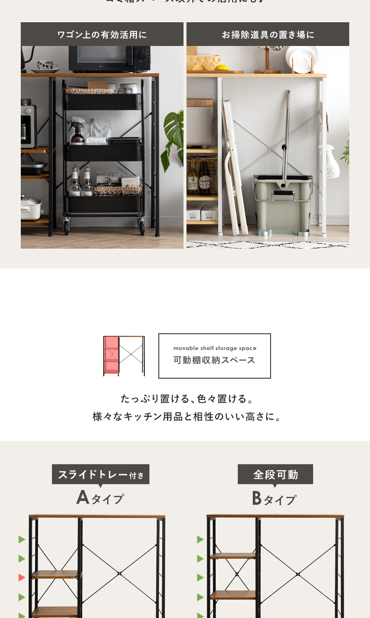 ゴミ箱上ラック キッチン収納 レンジ台 可動棚 家電収納
