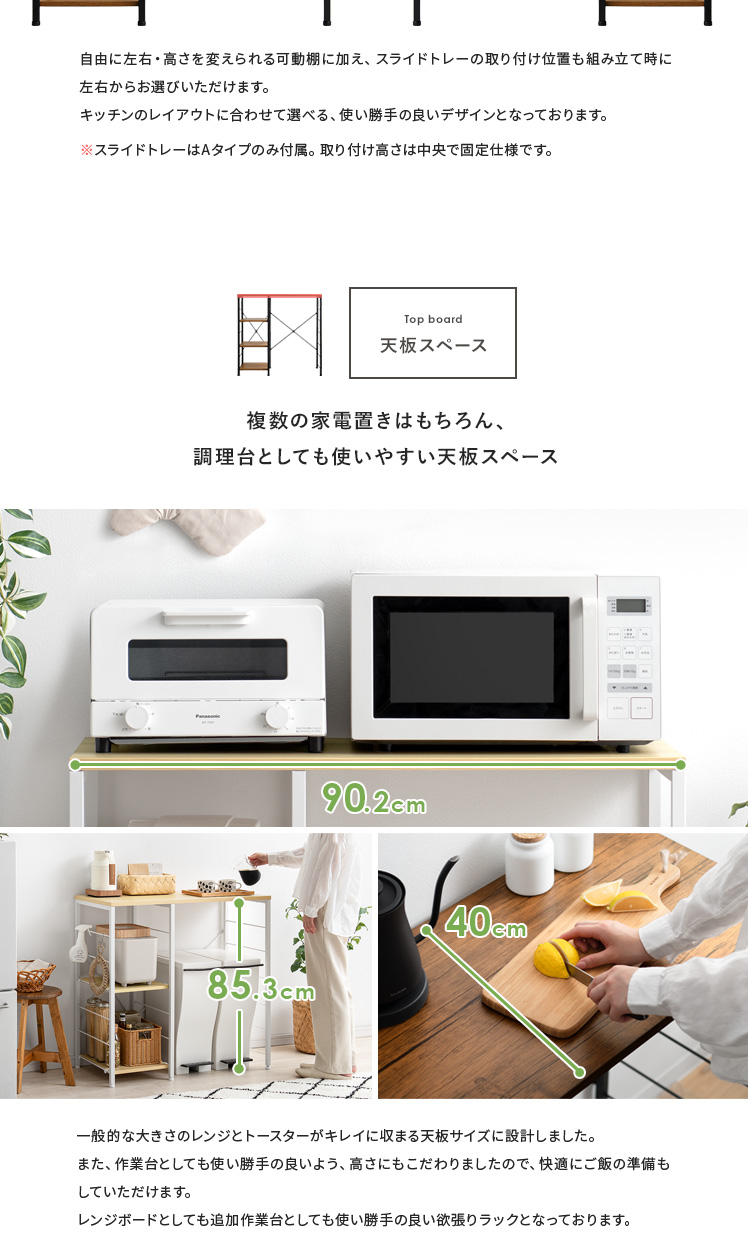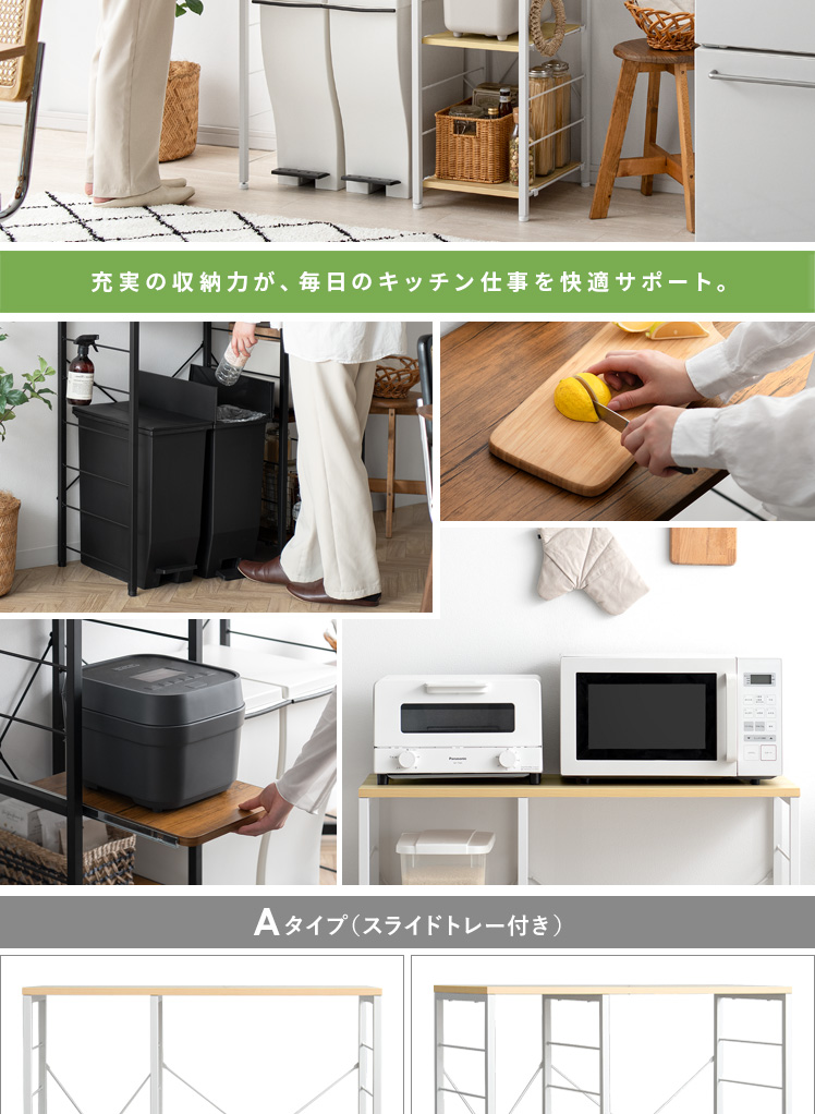 [幅90.2] ゴミ箱収納キッチンカウンター emery(エメリー) スライドトレー Aタイプ