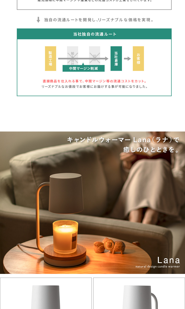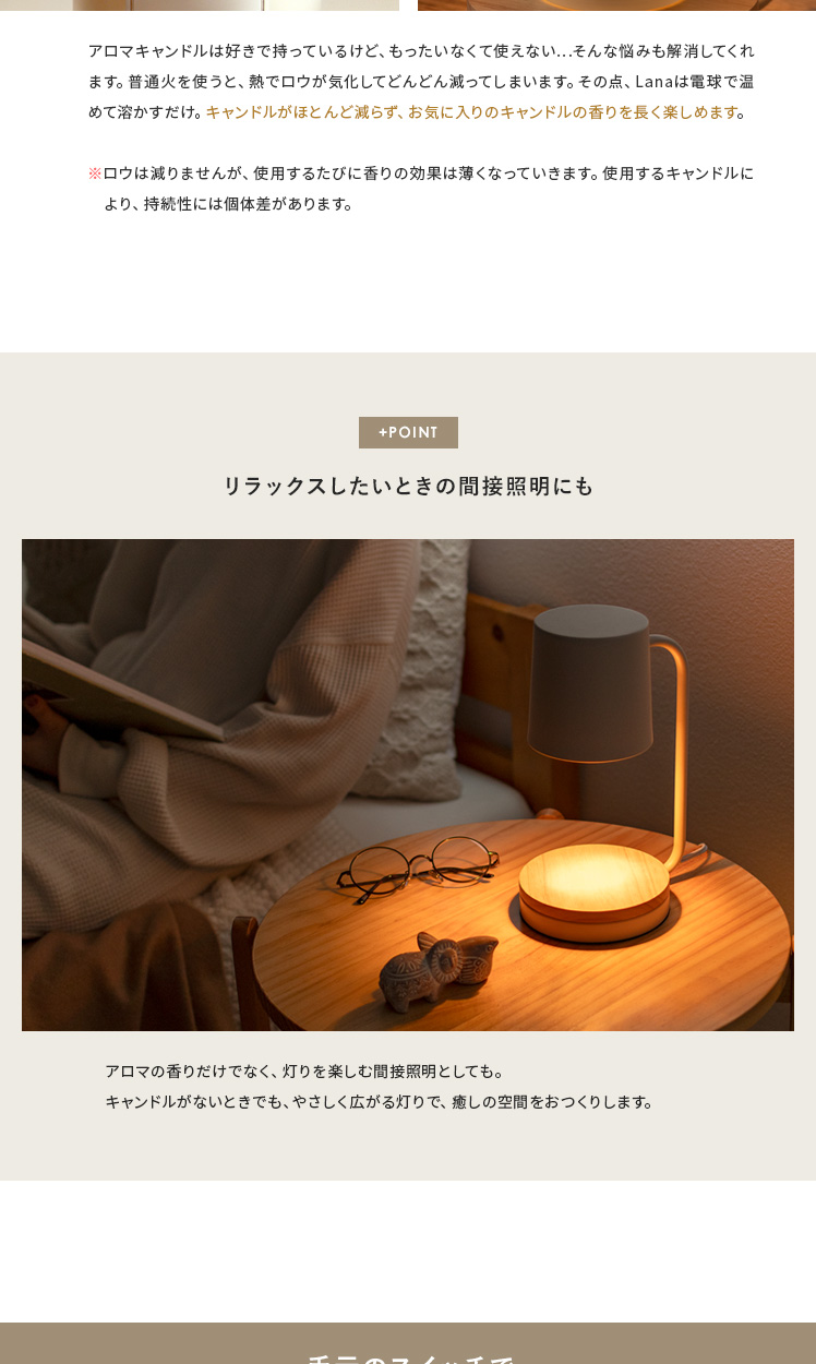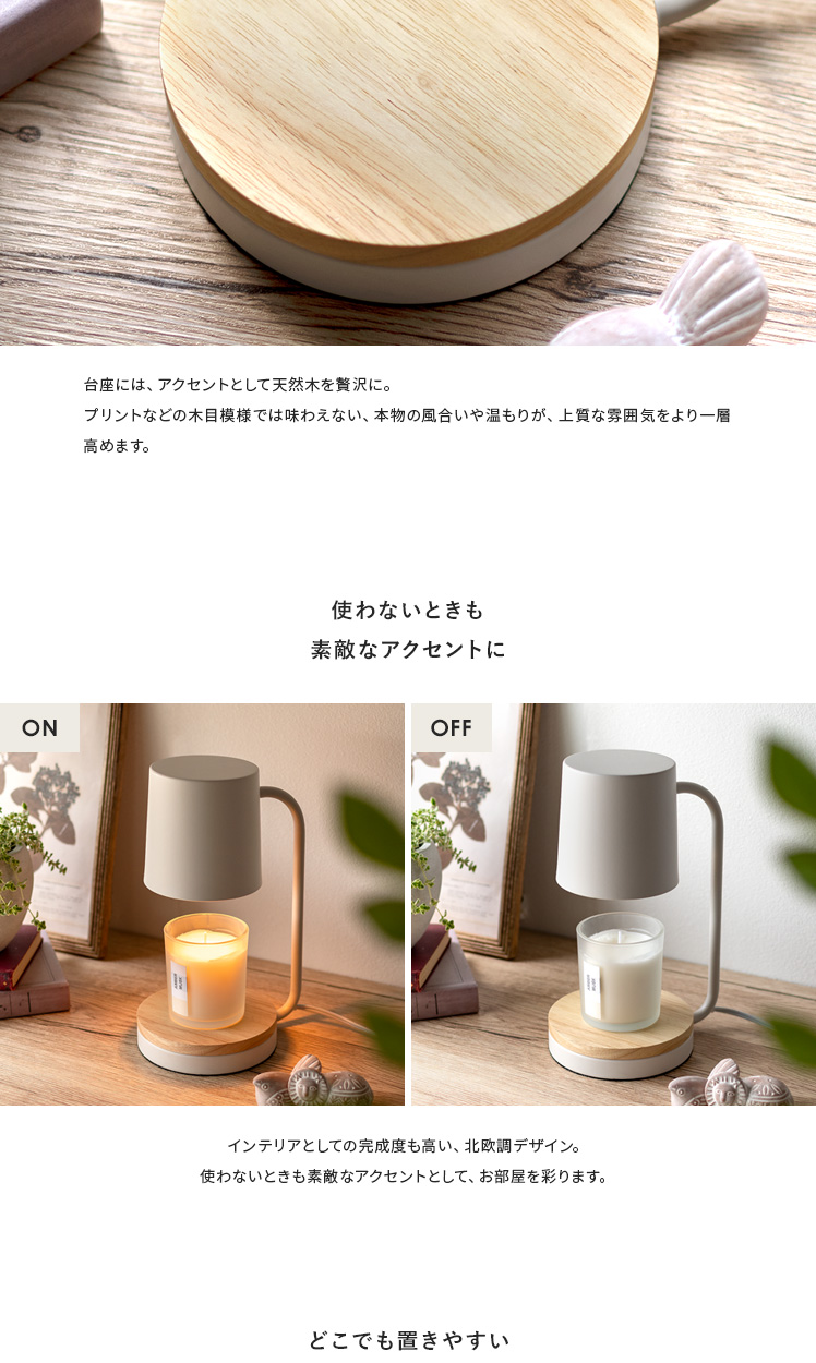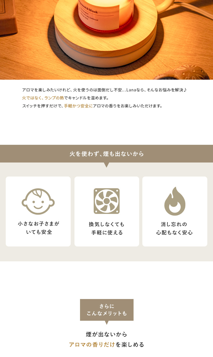 キャンドルウォーマー Lana〔ラナ〕/「香り」と「灯り」を同時に、手軽に♪火を使わず、アロマのある暮らしを。ランプの熱でキャンドルを温めるので、手軽かつ安全♪アロマの香りにも、ランプの灯りにも癒される時間をお楽しみいただけます。