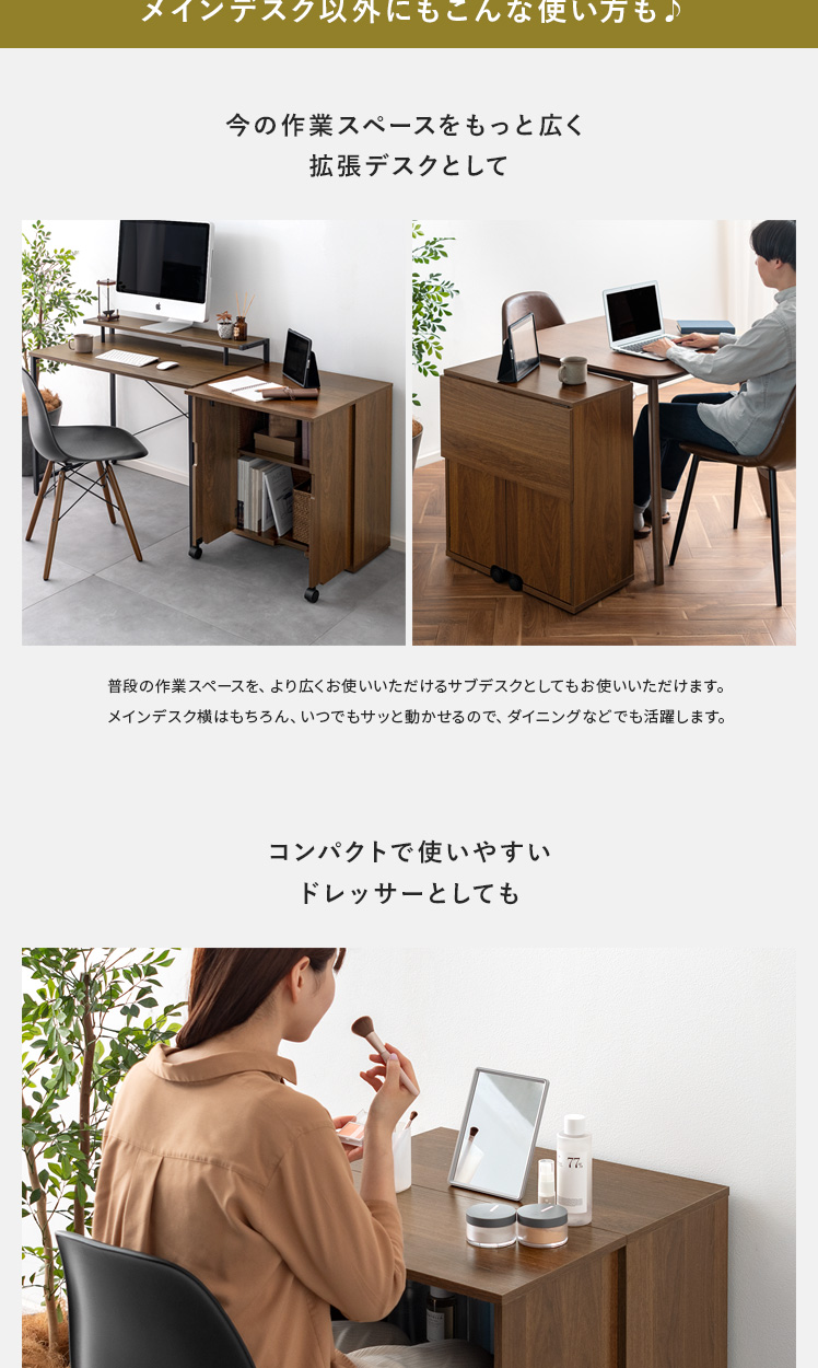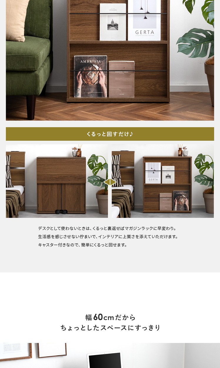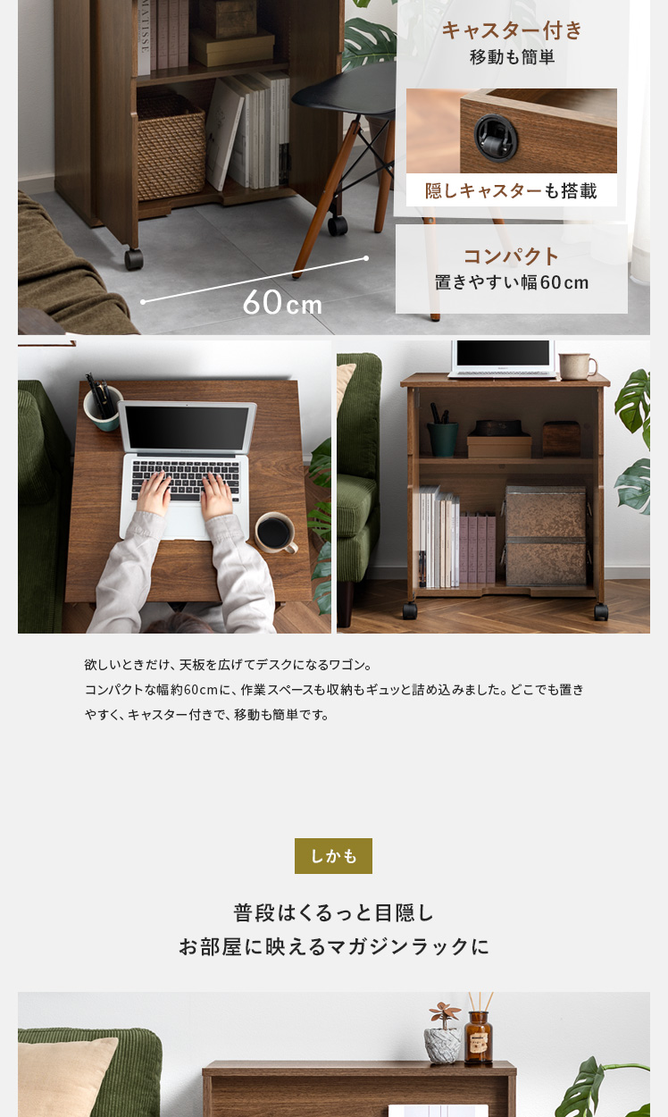 関連カテゴリ: 1台2役の2WAY家具 | Instagram掲載アイテム | テレワーク・在宅勤務おすすめ商品 > デスク・キャビネット(テレワークおすすめ商品) | テーブル > サイドテーブル・ナイトテーブル | 机・デスク > デスクワゴン | ラック・リビング収納 > 本棚・マガジンラック | 机・デスク > 折りたたみデスク | 机・デスク > パソコン・ワークデスク