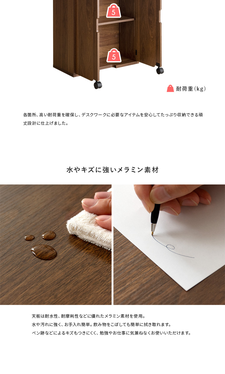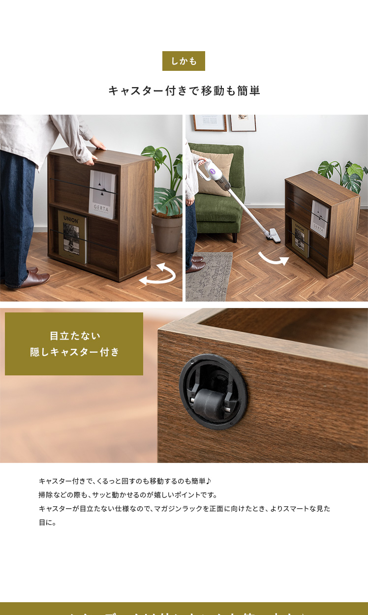 2way 収納ラック マガジンラック 隠しキャスター キャスター付き 作業台 省スペース 木目 ブラウン【5%OFFクーポン対象|公式なら毎日お得】