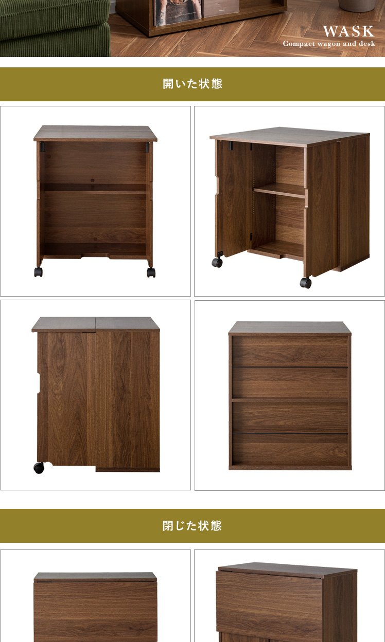[幅60] デスクになる折り畳みワゴン WASK〔ワスク〕