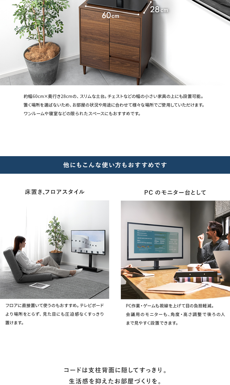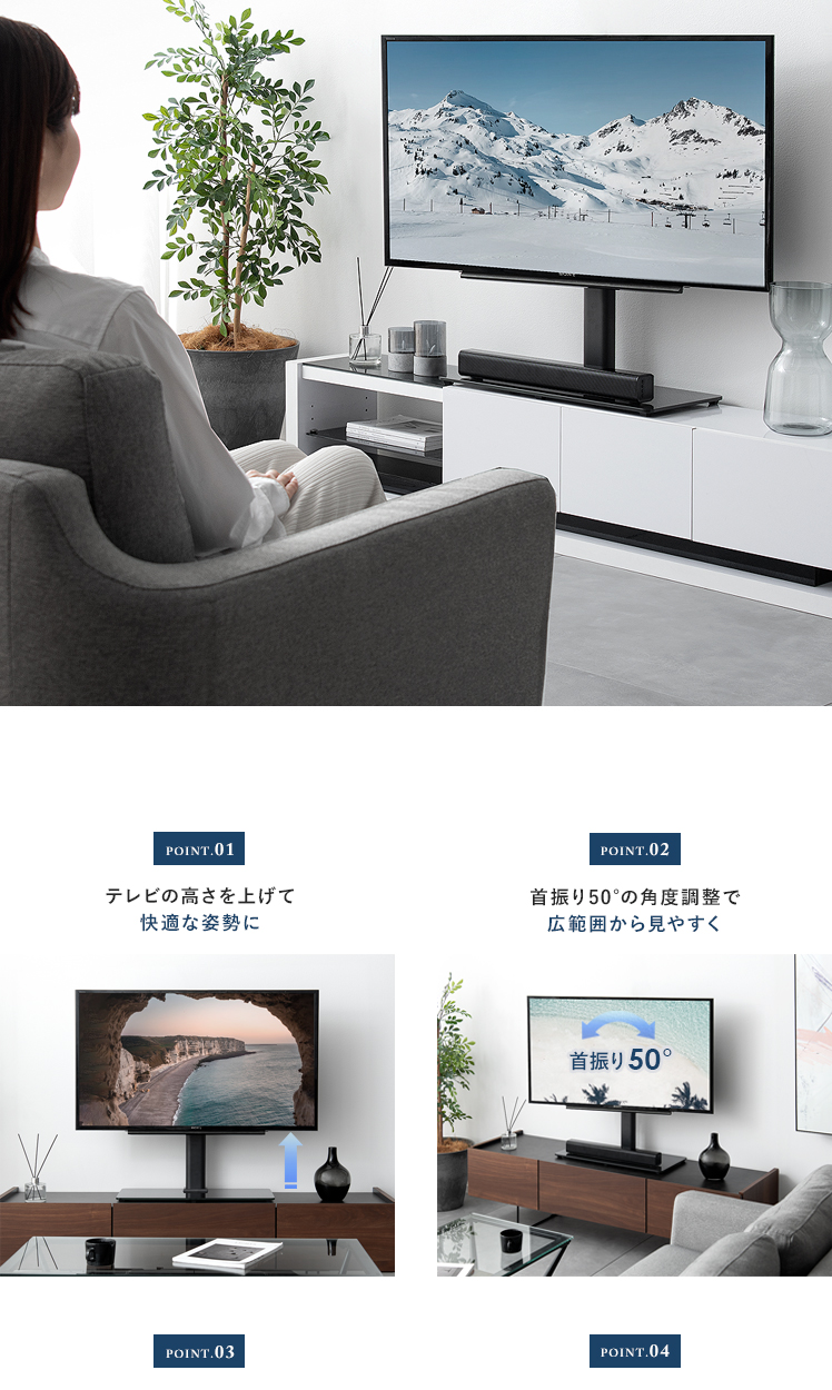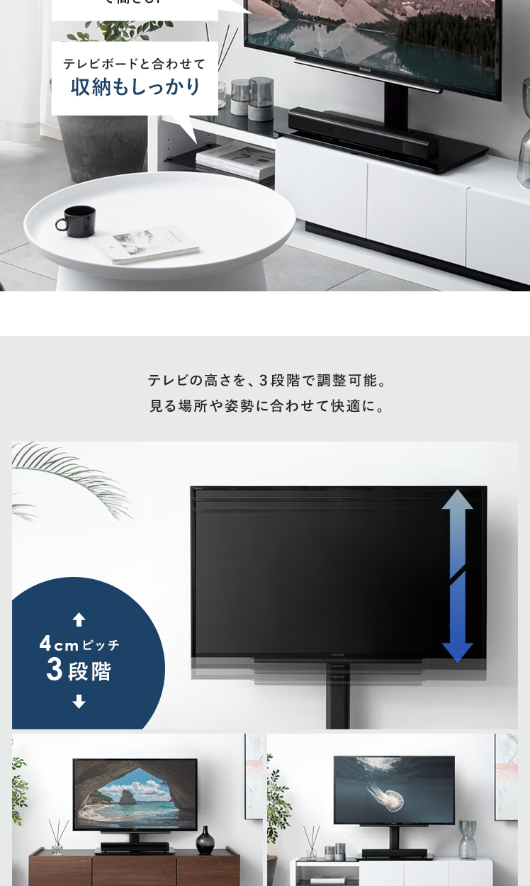 65型対応 角度調整可能 テレビ台上 壁穴不要で高さアップ