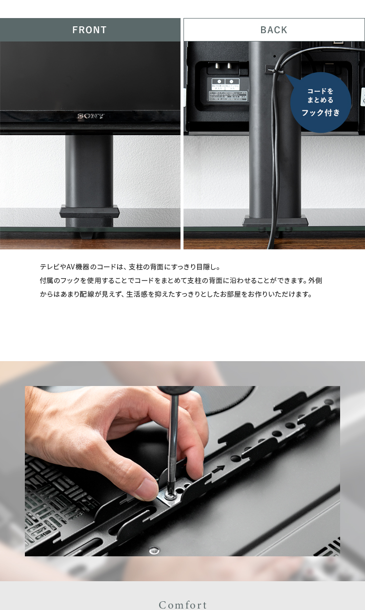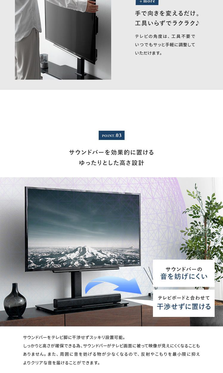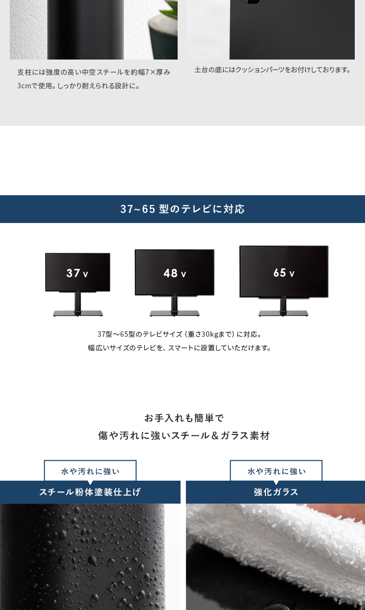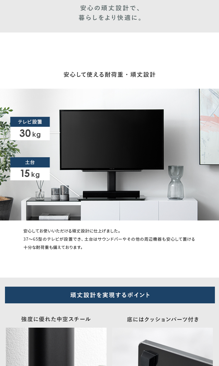 65型対応 角度調整可能 テレビ台上 壁穴不要で高さアップ