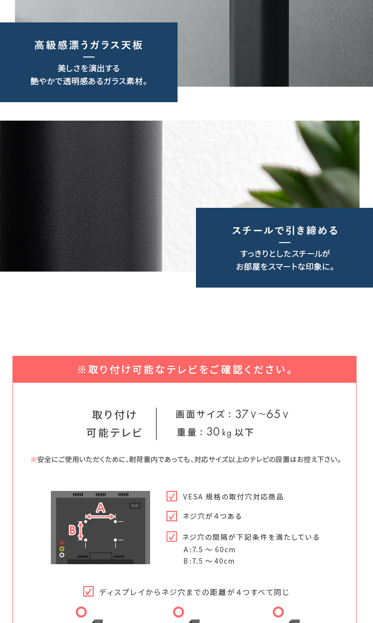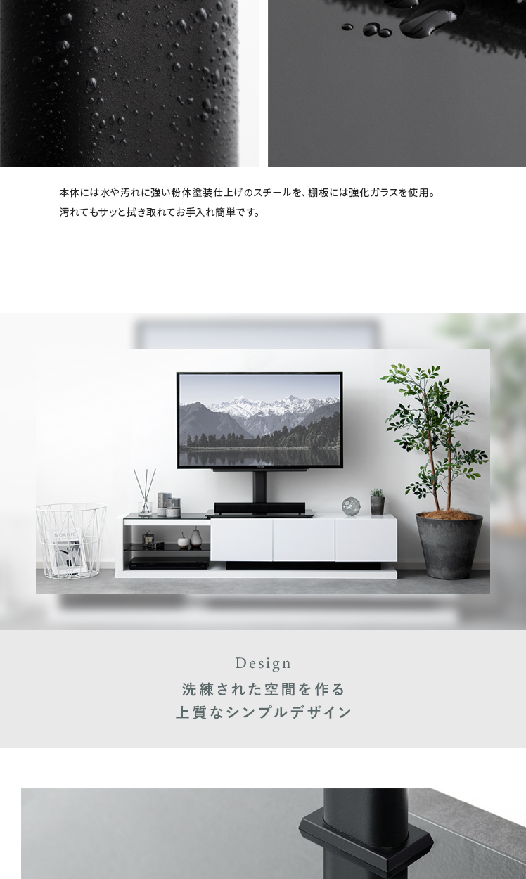 シンプル スチール ガラス ブラック 壁寄せ【公式限定|いつでも3%OFFクーポン対象】