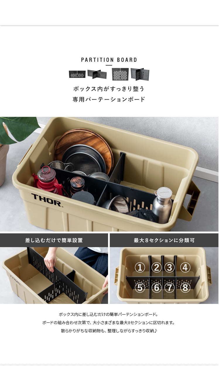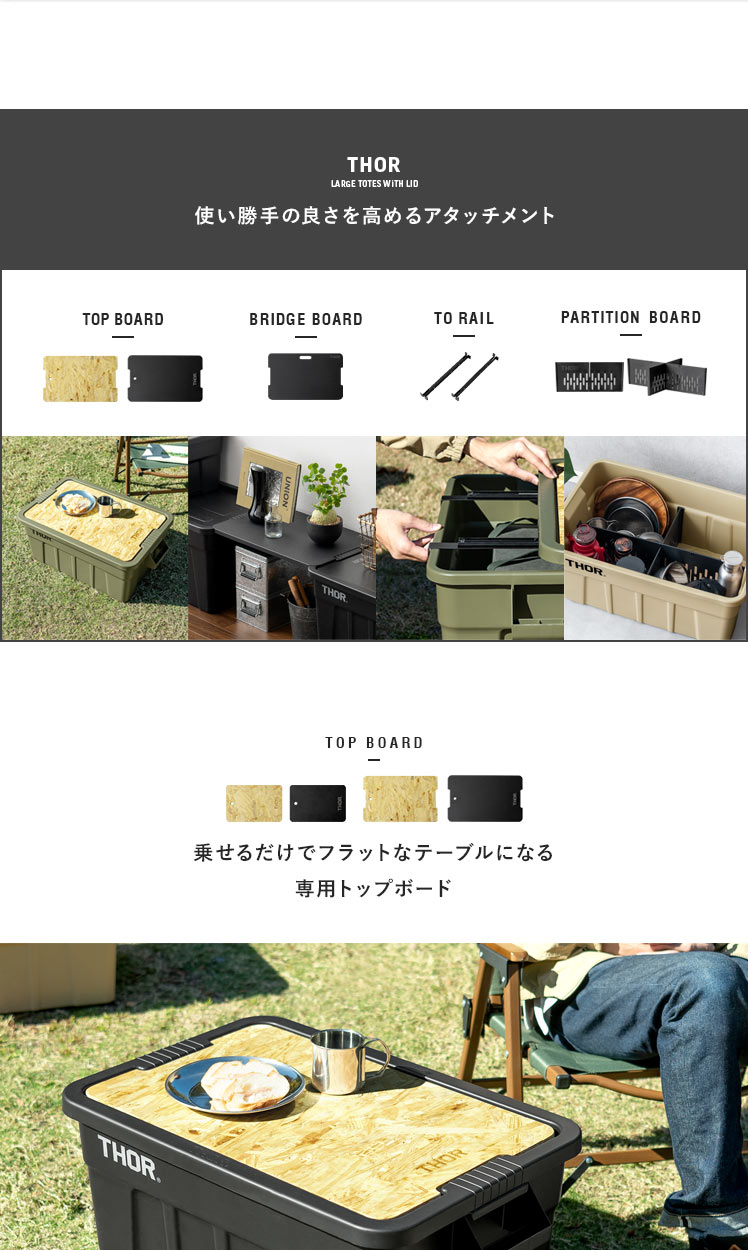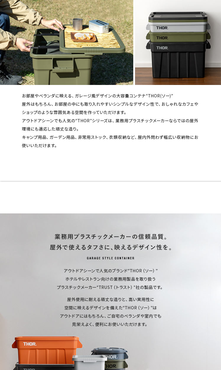 THORはプラスチックメーカーTRUST社の製品です。アウトドアにはもちろん、ご自宅のベランダや室内でも見栄えよく、便利にお使いいただけます。
