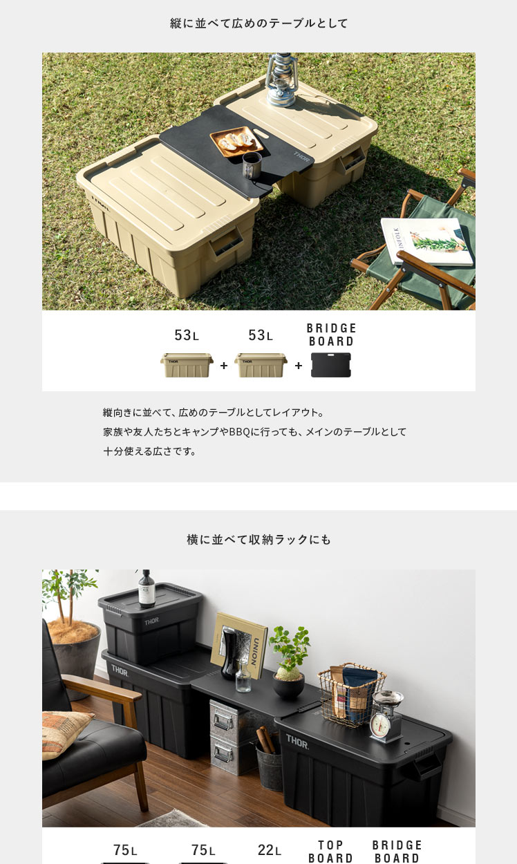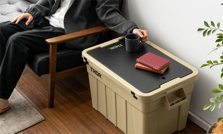 53L・75Lのフタに載せればフラットなテーブルとしても。