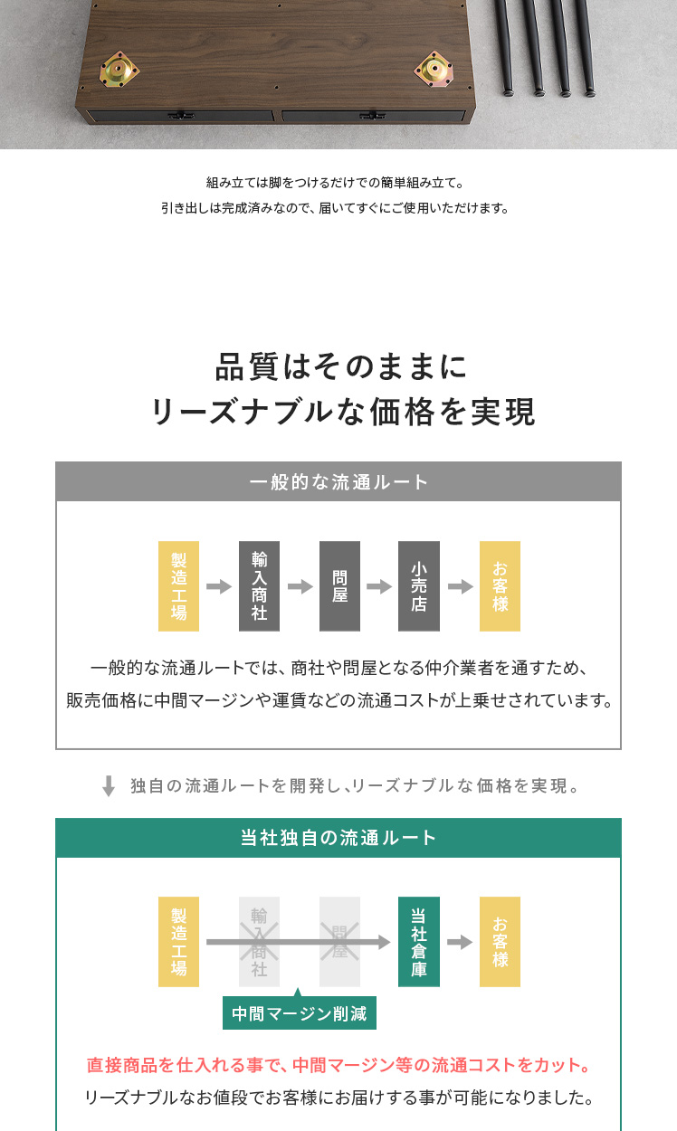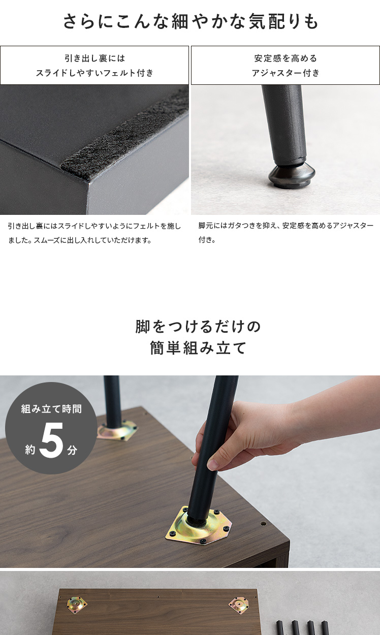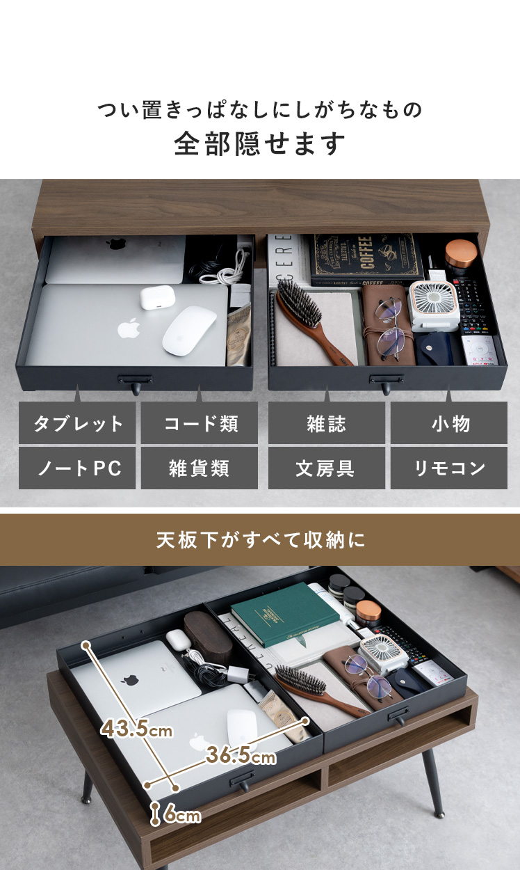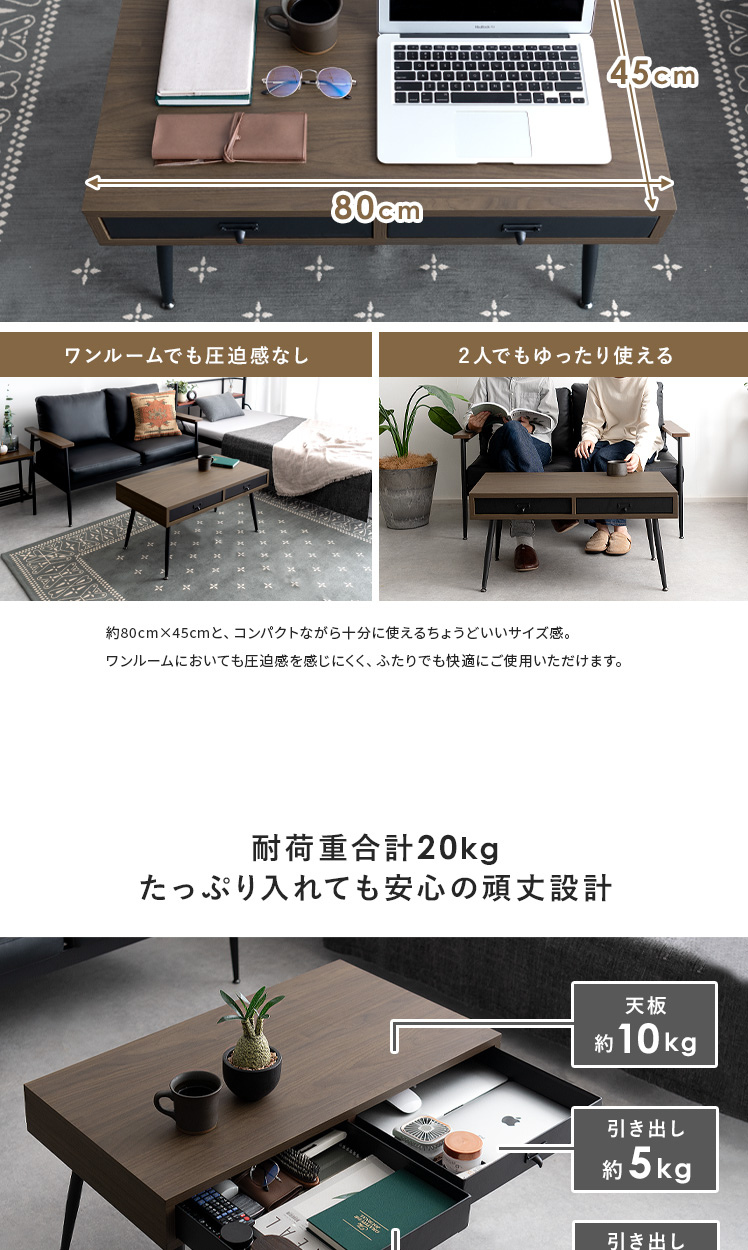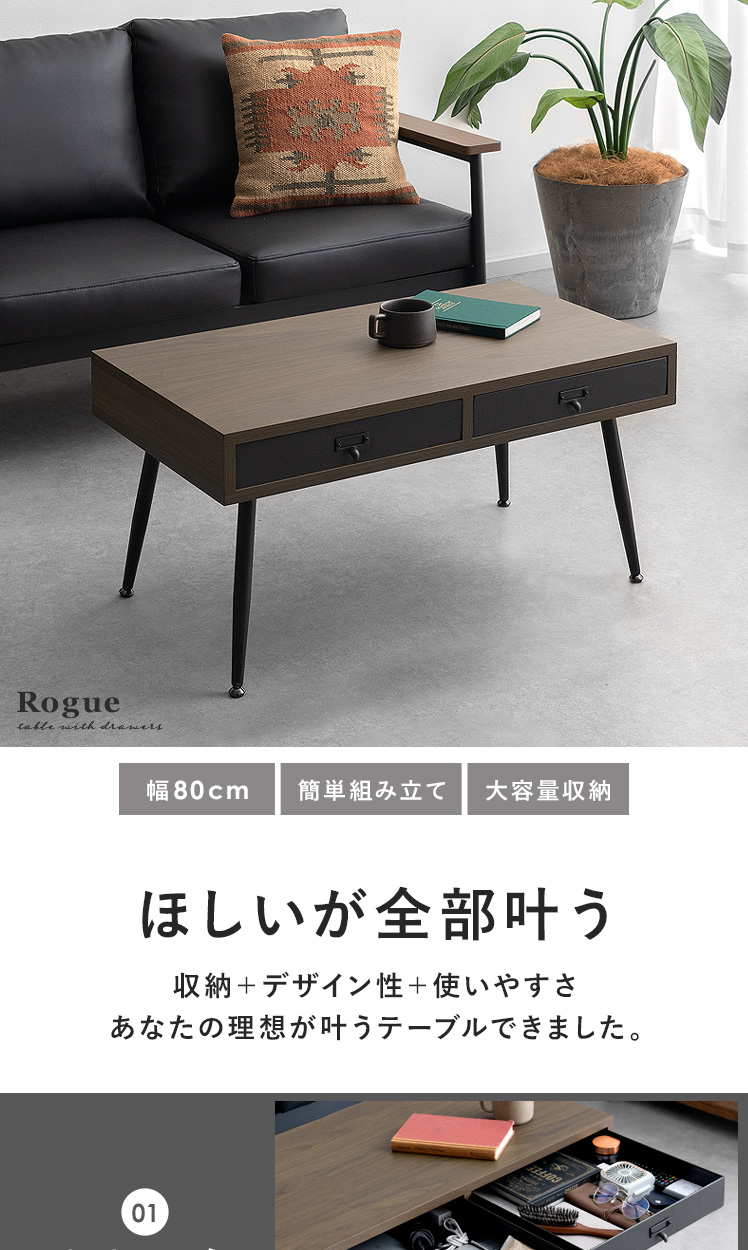 [幅80] 引き出し付きローテーブル Rogue〔ローグ〕